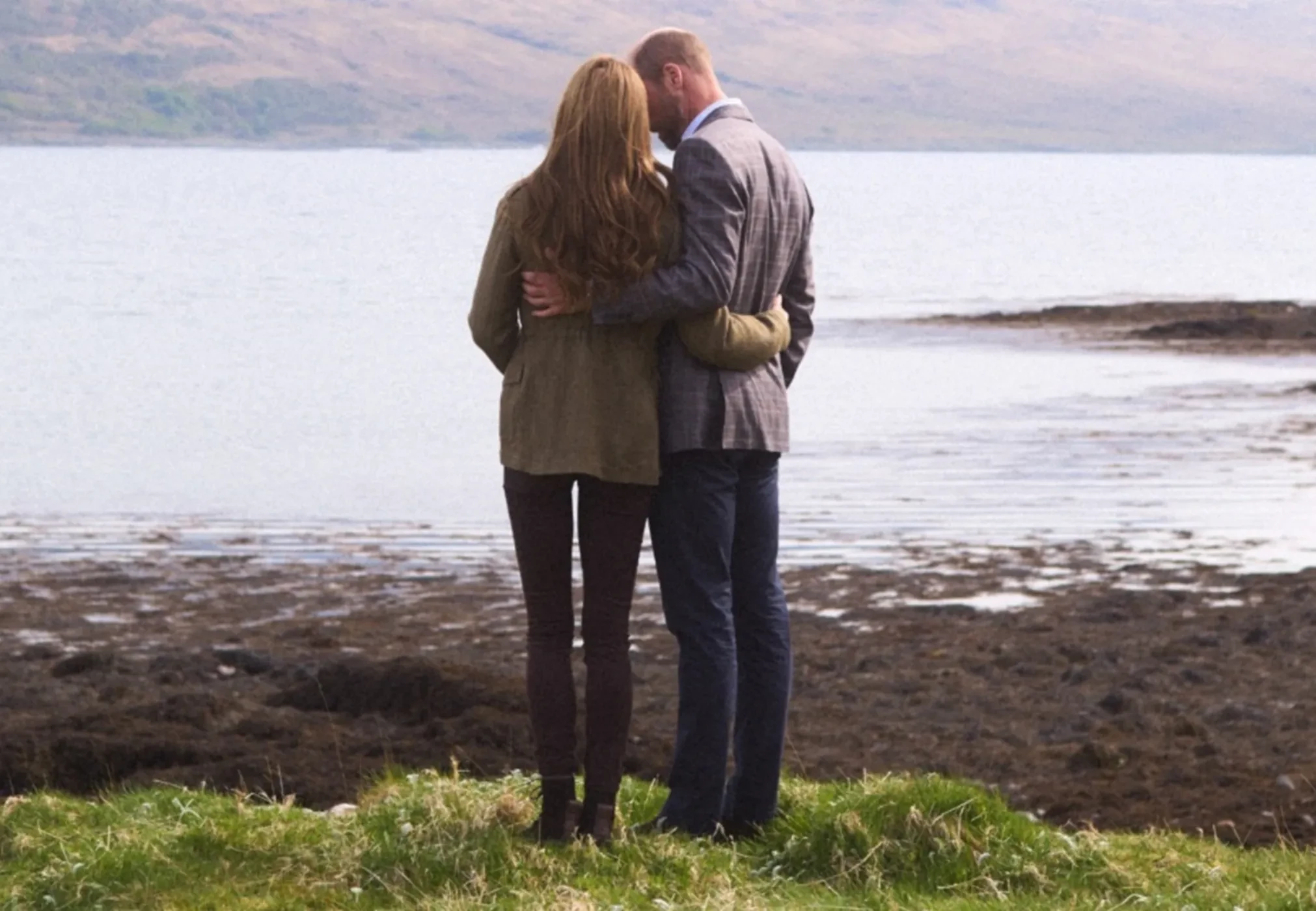 На снимке принц и принцесса Уэльские стоят в обнимку спиной к камере на фоне горного пейзажа и водоема. "Прекрасно вернуться на остров Малл. Спасибо всем за такой тёплый приём", — подписали публикацию супруги.