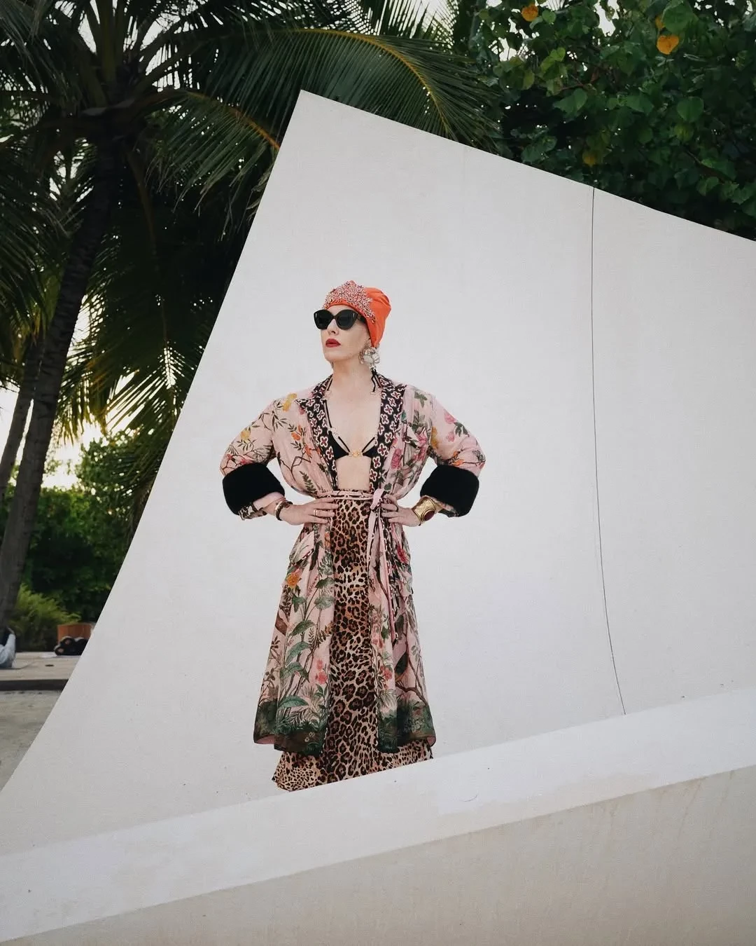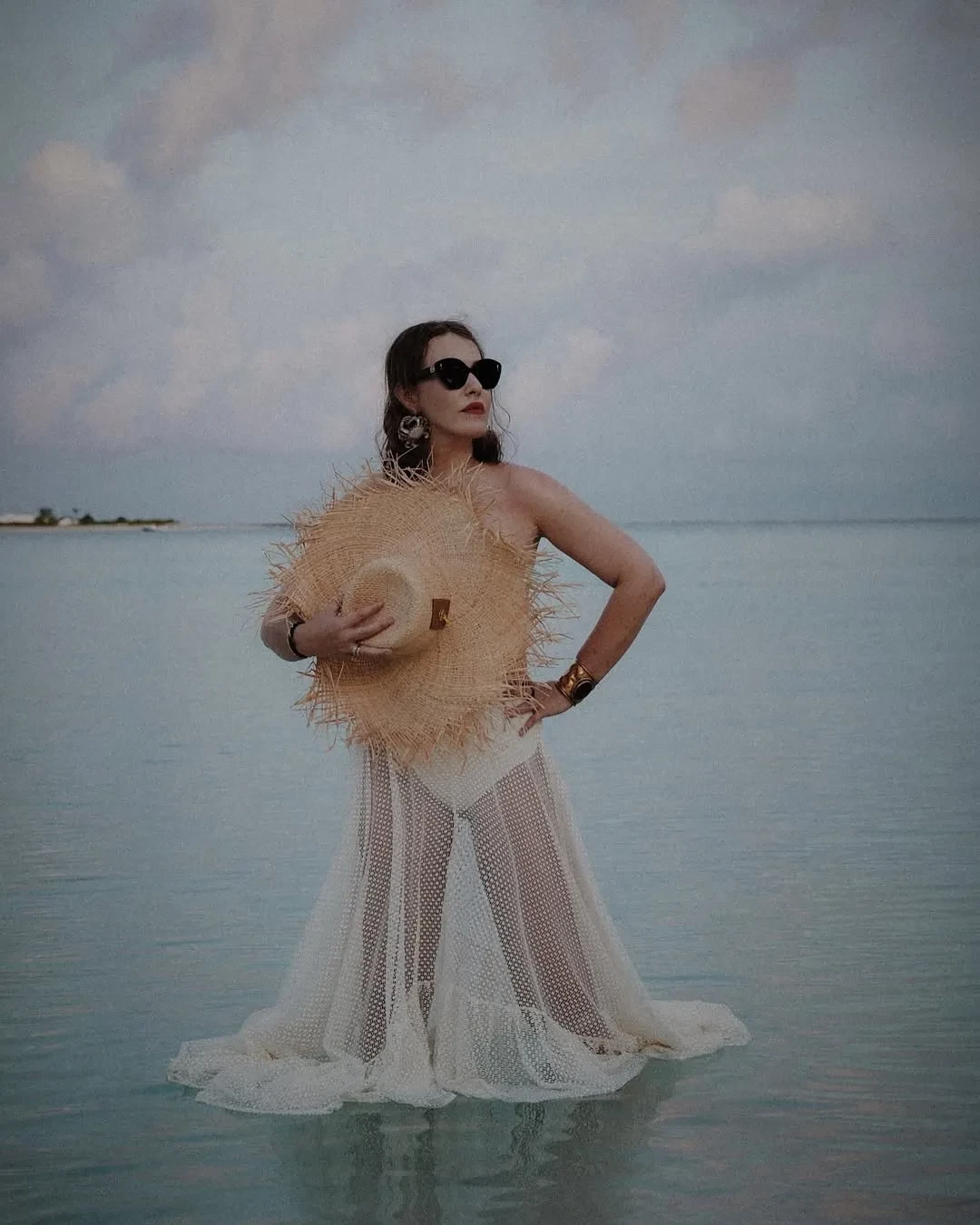 Ксения СобчакСобчак также показала свои пляжные образы. На отдыхе Ксения, которая сотрудничает со стилистами Мишей и Китти, носила белый прозрачный комплект Bahia Maria из топа и юбки в стиле пляжной невесты, дополнив его соломенной шляпой, халаты с леопардовым и цветочным принтами Leur и Gucci, тюрбаны и массивные украшения.