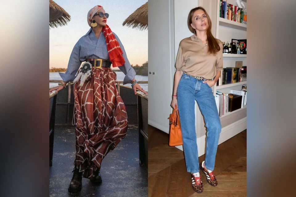 А вот Ксения простые образы не любит. В ее случае — чем навороченнее, тем лучше. Во время путешествия по Африке Собчак выгуляла эффектную юбку с принтом жирафа. «Я не знаю, как мне удалось, но я влезла в эту кутюрную жирафью юбку 2008 года от Roberto Cavalli», — похвасталась в своем блоге журналистка. Ее она сочетала с голубой рубашкой в полоску и грубыми ботинками. Дополнила образ ярким платком на голову, крупными украшениями и поясной сумкой с коровьим принтом, похожей на известный амулет — ловец снов. Что ж, Индиана Джонс нервно курит в сторонке.