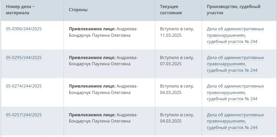Скриншот с сайта с новой фамилией Паулины АндреевойНапомним, что слухи о расставании Паулины Андреевой и Фёдора Бондарчука начали распространяться ещё прошлой осенью. Тогда режиссёр стал выходить в свет без обручального кольца. По одной из версий, причиной их разрыва стала измена Бондарчука с актрисой Софьей Синицыной. Примечательно, что сама Синицына слухи о романе с режиссёром отрицала. Согласно другой версии, супруги не сошлись во взглядах на жизнь. По данным СМИ, Паулина уже переехала из квартиры Фёдора вместе с их четырёхлетним сыном Иваном. После развода ей досталась квартира в Санкт-Петербурге, где она сейчас и живёт.