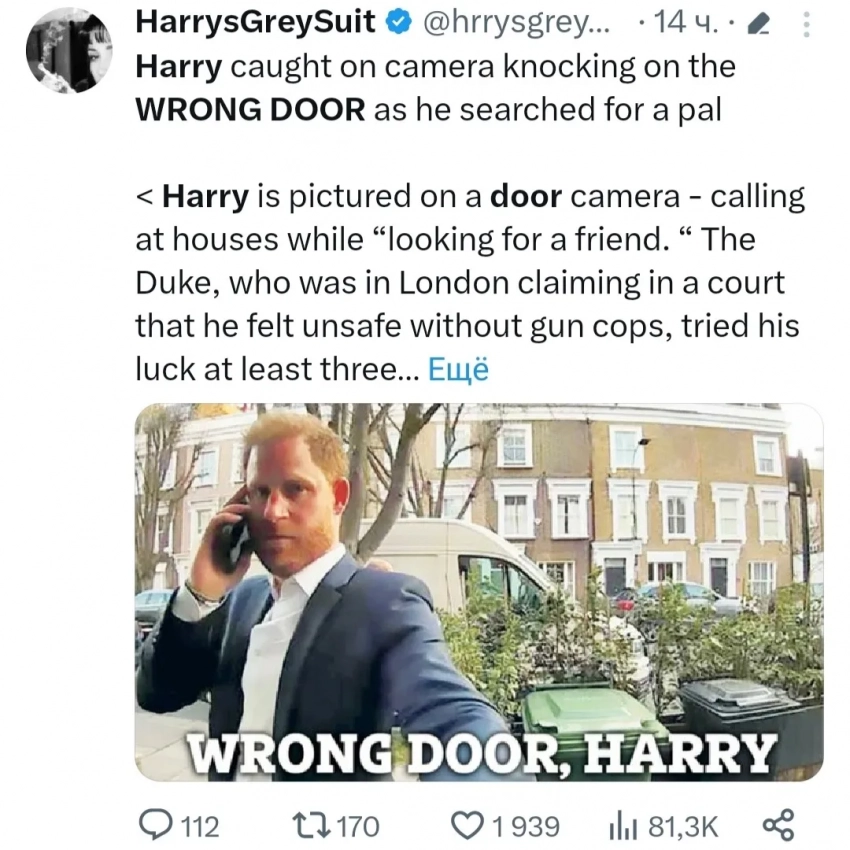 "Зашёл не в ту дверь". Принц Гарри потерялся в Лондоне без охраны и стучался к незнакомцам