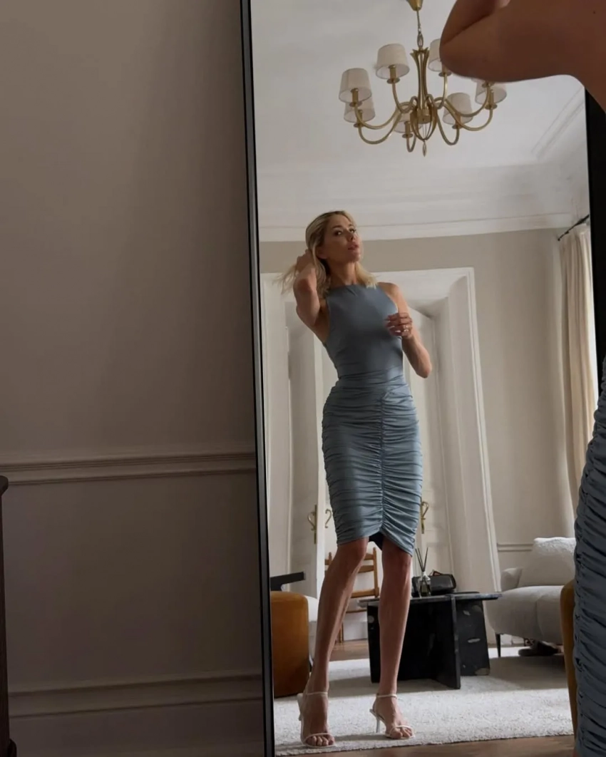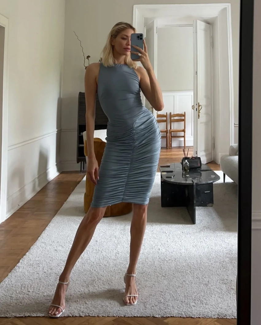 Елена Перминова снялась в новой фотосессии для бренда 12 Storeez. На снимках, которые появились в соцсетях, 38-летняя Перминова позирует в летних образах: она примерила голубое облегающее платье с белыми босоножками на каблуке и коричневый комплект из юбки и топа.