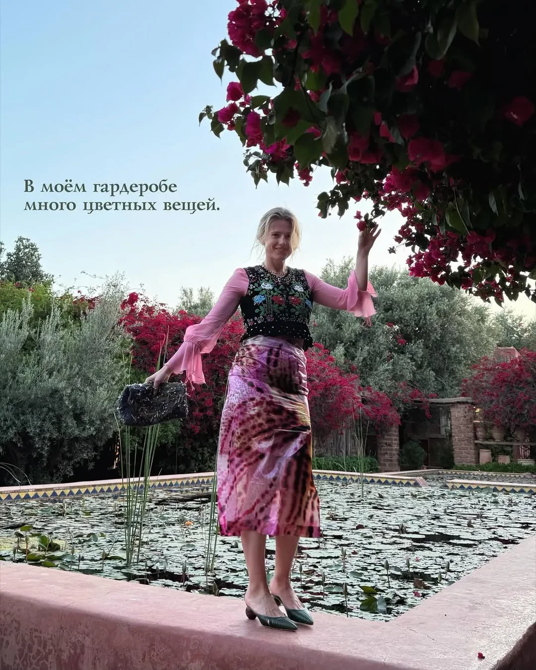 37-летняя супруга Константина Эрнста Софья провела праздники в Марокко, где посетила музей Ива Сен-Лорана — в винтажной юбке авторства дизайнера — и осмотрела другие местные достопримечательности. Актриса рассказала в соцсетях, что её яркий гардероб идеально вписался в местный колорит, хотя в Москве она иногда стесняется носить такие вещи.