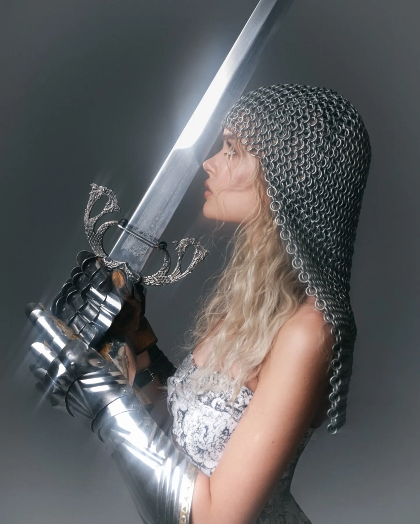 "В каждой девочке живёт рыцарь". 18-летняя жена режиссёра Марка Горобца снялась в доспехах на фоне критики пары