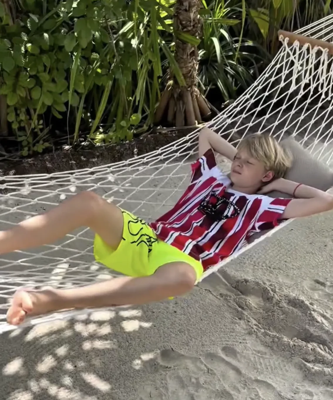 На снимках супруга фигуриста показала завтрак в кругу сыновей: Николая, Александра (Гном Гномыча) и Арсения, а также поделилась и другими снимками себя и детей. "Глазами мужа", — подписала Яна видео, где она позирует в гамаке в купальнике и панаме Chanel.