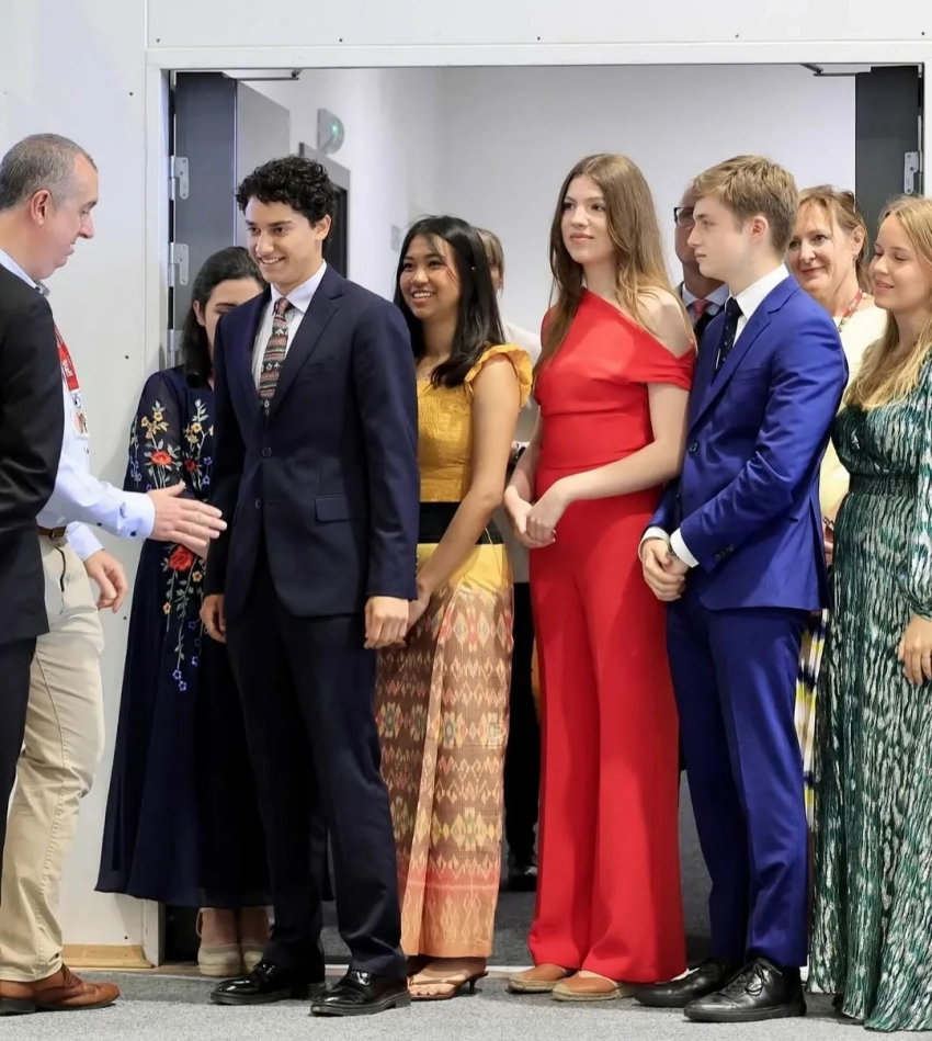 На церемонию вручения дипломов девушка пришла в ярко-красном комбинезоне. Летиция, которая тоже посетила мероприятие вместе с мужем, выбрала брючный костюм того же цвета. Фотографии с события позже были опубликованы в официальных сетях королевской семьи.