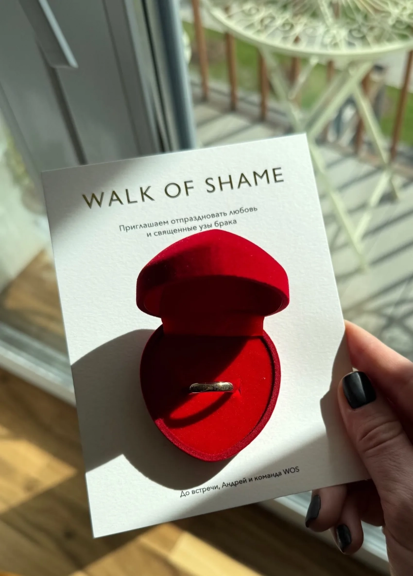 Ксения КитаеваНовая коллекция бренда Андрея Артёмова Walk of Shame посвящена свадебной эстетике и любви. В качестве приглашений на показ гости получили кольца в красной коробочке, а на шоу, между залов ЗАГСа, продефилировала Ольга Карпуть. В конце показа гостей ждал сюрприз — настоящая свадьба. Модель, закрывающая шоу и по совместительству кастинг-директор бренда, Ольга Трухина, вышла замуж за своего давнего бойфренда Вадима Шафакова.