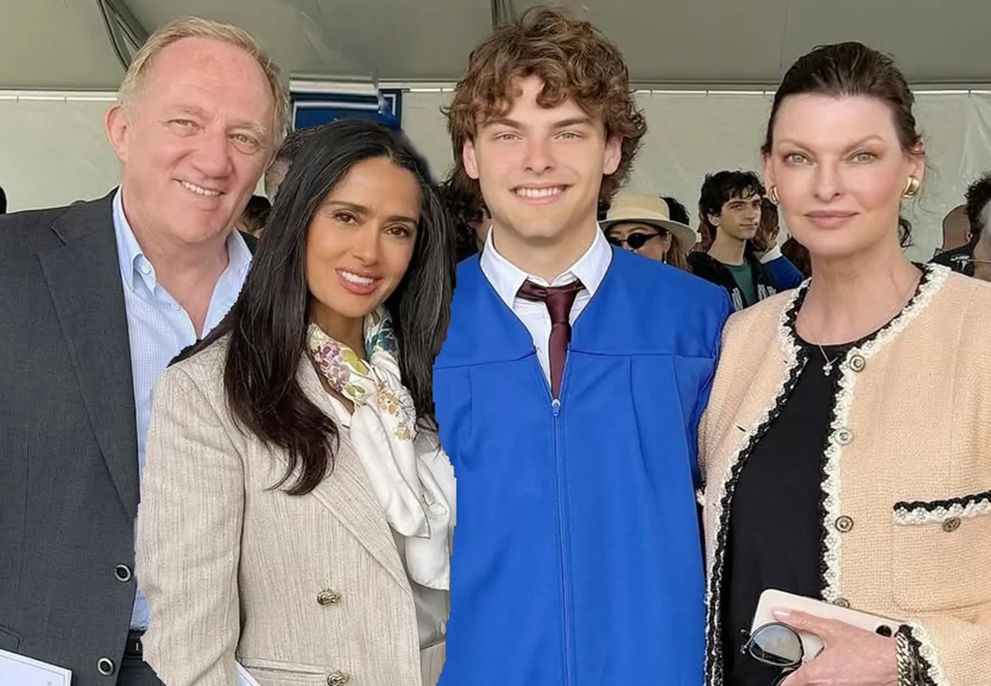 Миллиардер Франсуа-Анри Пино с женой Сальмой Хайек пришёл на выпускной внебрачного сына от Линды Евангелисты, которого отказывался признавать