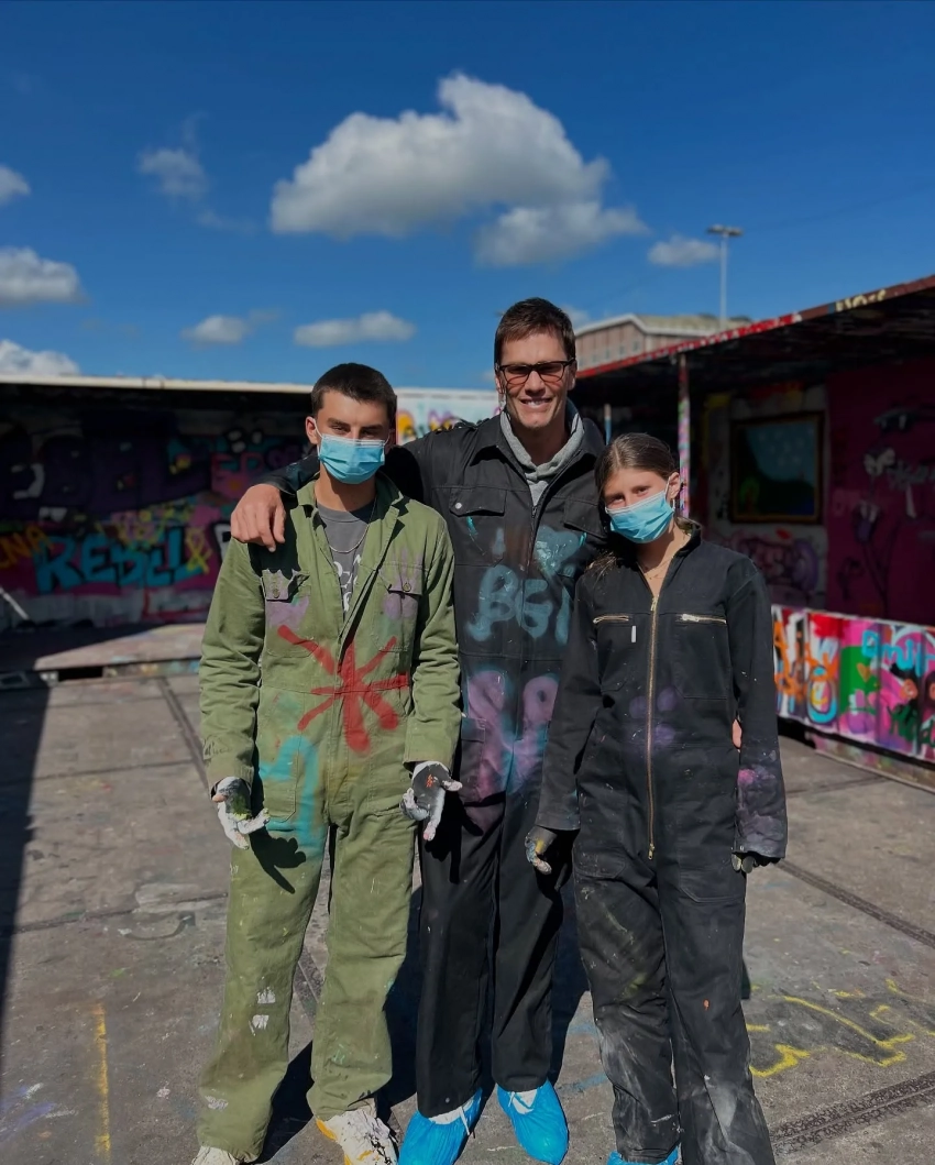 Подборка снимков была посвящена недавним путешествиям семьи. На одном из фото, подписанном "Плыву по жизни со своим любимым штурманом", Том и Вивьен позируют в обнимку в автомобиле. На других кадрах — моменты, запечатлённые во время поездок по Германии и Нидерландам: Брэди с детьми посетили футбольный матч, рисовали граффити, заглянули в несколько музеев, а также катались на лодке по каналам Амстердама.
