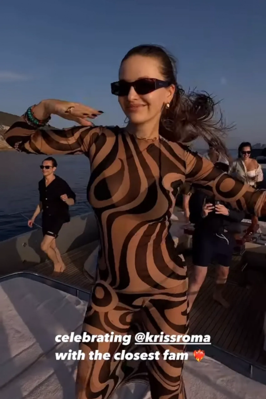 Кристина Романова, которая в прошлом году устроила трёхдневную вечеринку в Марокко в честь своего юбилея с мировыми звёздами, отметила 31-й день рождения "скромной" прогулкой на яхте в районе Ибицы. Поздравить именинницу собрались её близкие друзья, а возлюбленный, 62-летний миллиардер Владислав Доронин, устроил ей сюрприз в стиле Джеймса Бонда и догнал яхту на катере.