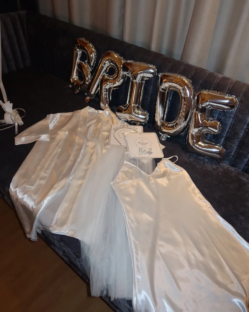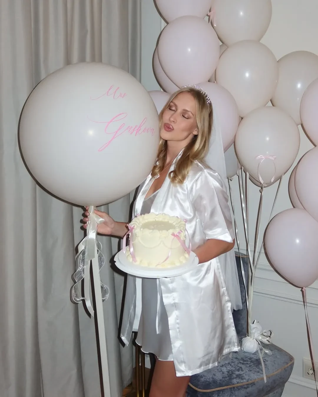 Лиза МамиашвилиСвадьбе предшествовал традиционный девичник, который Лиза вместе с подружками отмечала в одном из московских отелей: торт, шарики, лимузин и фотосессия в фате — всё было по законам жанра.