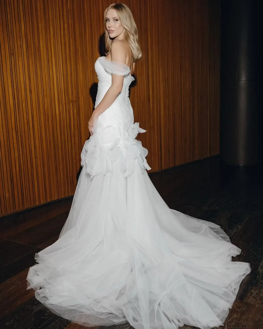 Фотографиями из ЗАГСа счастливая невеста поделилась в соцсетях, коротко подписав снимки: "Муж и жена". Для свадьбы Лиза выбрала воздушное платье с открытыми плечами и длинным шлейфом.