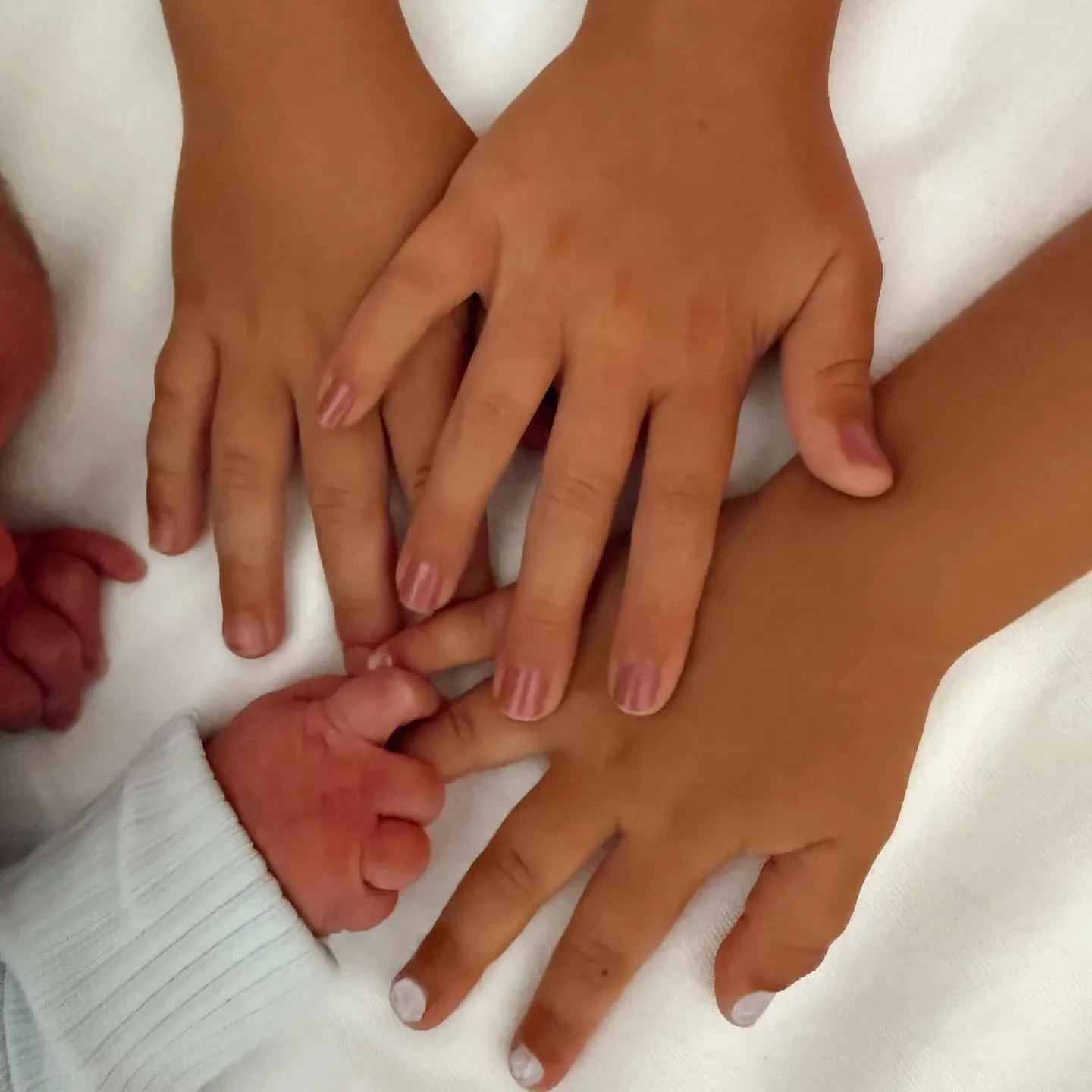 На снимке запечатлены руки маленькой дочери и старших детей Гризманна. "15 июня родилась Шай Гризманн Чоперена — недостающий кусочек нашего пазла", — подписал фотографию 34-летний футболист.