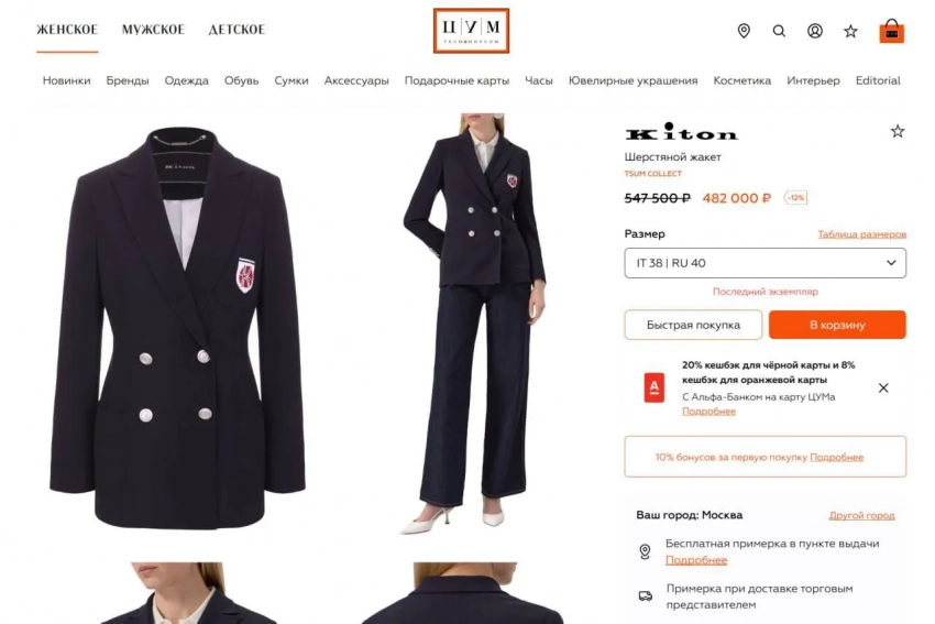 Скриншот с сайта ЦУМаВ итоге снимки с Гехт на ПМЭФ завирусились в Телеграме. Комментаторы удивляются, откуда у чиновницы средства на столь дорогие наряды, а также выражают недовольство по поводу таких трат.