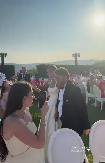 Тимати на торжестве отвечал за музыкальное сопровождение вместе с Григорием Лепсом, но после окончания своей программы, по всей видимости, решил присоединиться к гостям. Судя по видео, в какой-то момент он также принял участие в танцах, исполнив несколько па лезгинки.