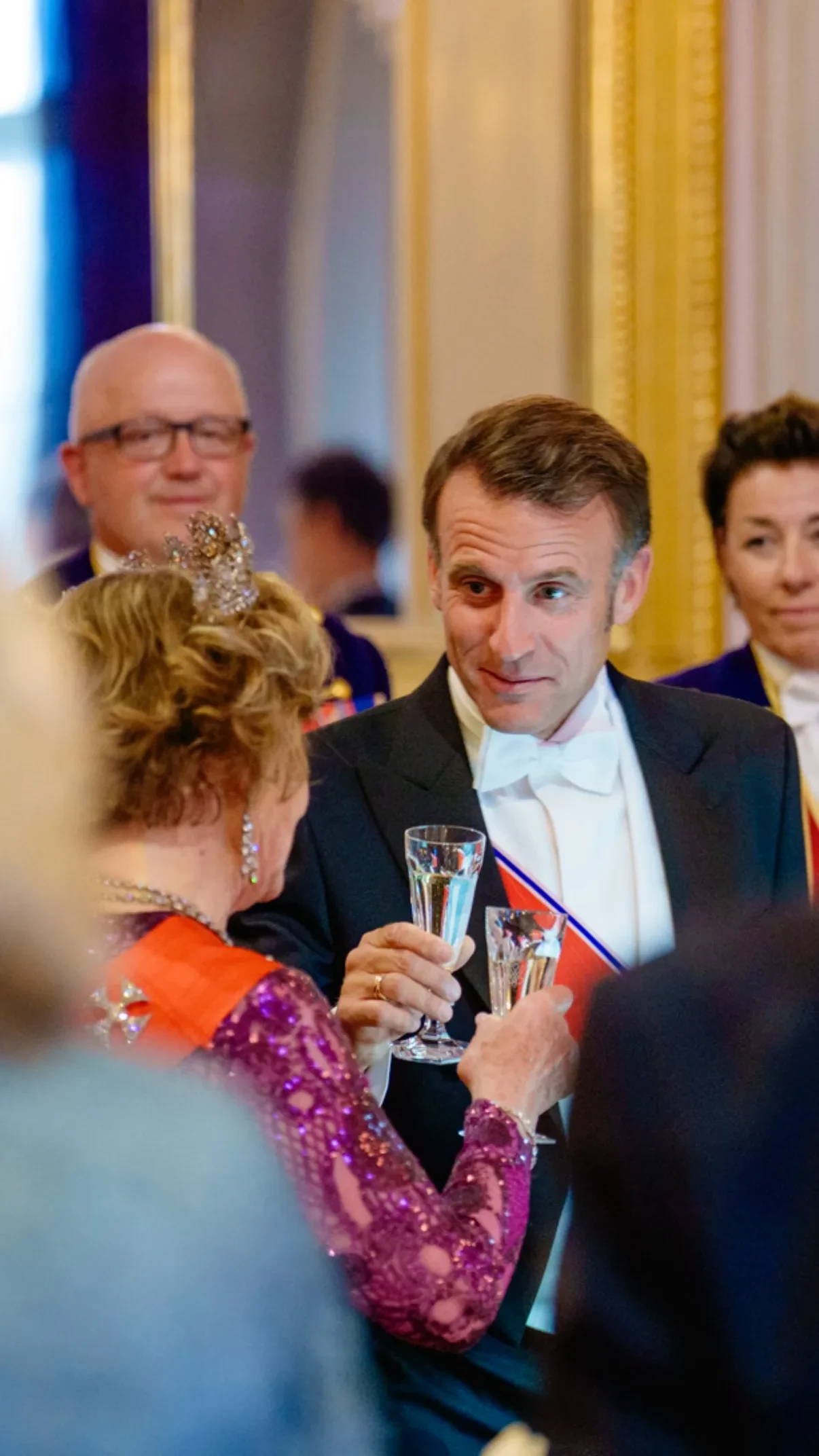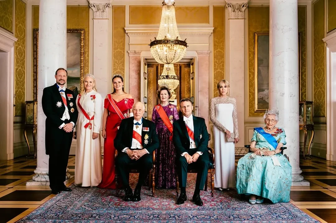 Отмечается, что президент Франции впервые прибыл в Норвегию за более чем 40 лет. По случаю официального визита двор устроил гала-ужин в Королевском дворце в Осло с участием короля Харольда и королевы Сони, а также кронпринцессы Метте-Марит, принцесс Ингрид Александры и Астрид (первая была в платье от Vivienne Westwood).