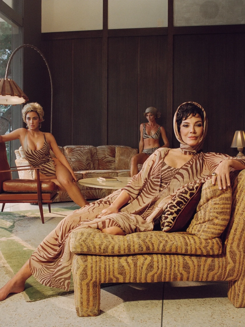 Ким Кардашьян вместе с "помолодевшей" после пластической операции матерью Крис Дженнер снялась в новой рекламной кампании своего бренда корректирующего белья Skims. Коллекция купальников и аксессуаров для отдыха у воды была создана в коллаборации с модным домом Roberto Cavalli. В объективе фэшн-фотографа Нади Ли Коэн мама с дочерью позировали в образах, вдохновлённых эстетикой 80-х: анималистические принты, ретро-повязки на голову, парео, массивные украшения и соответствующие эпохе прически.