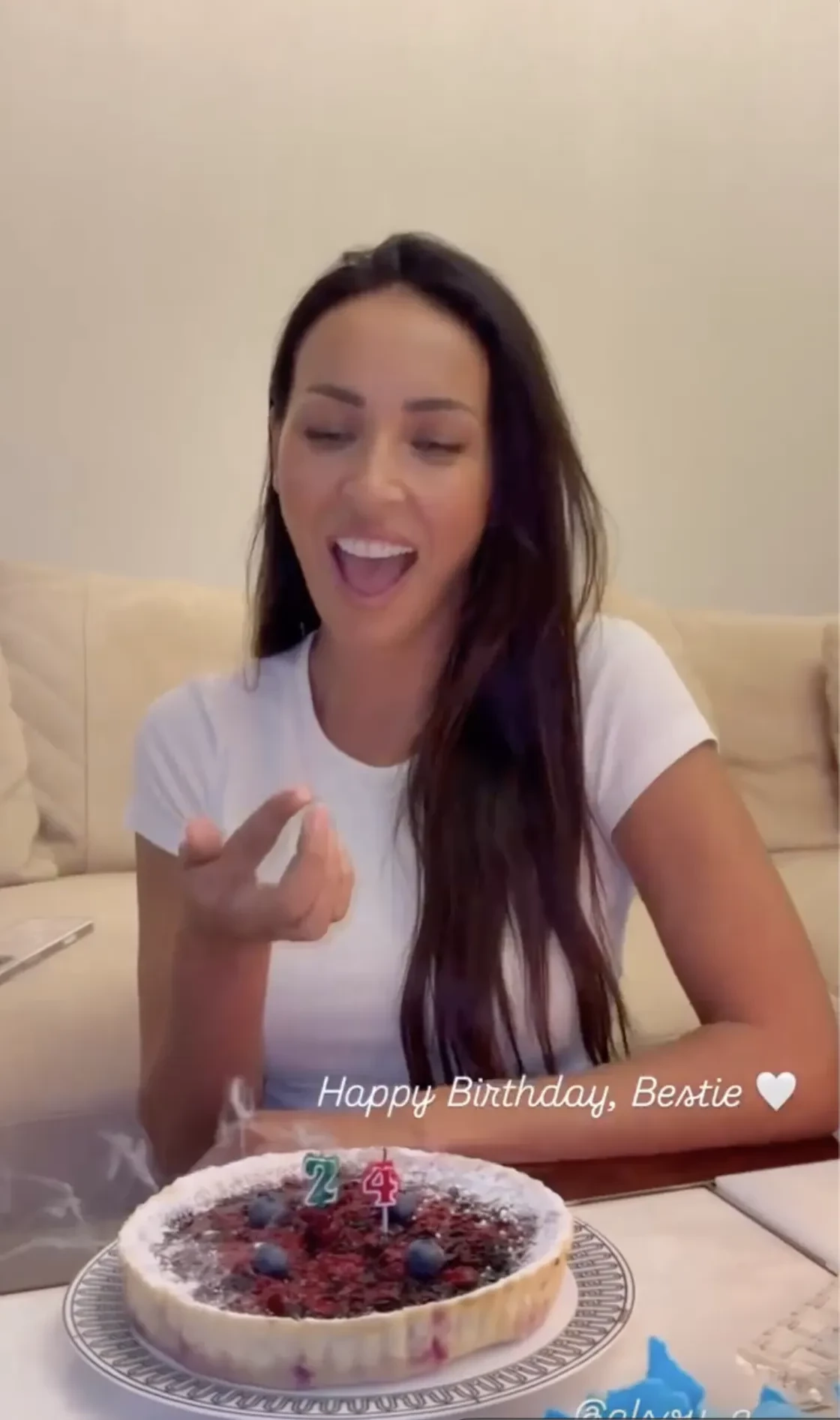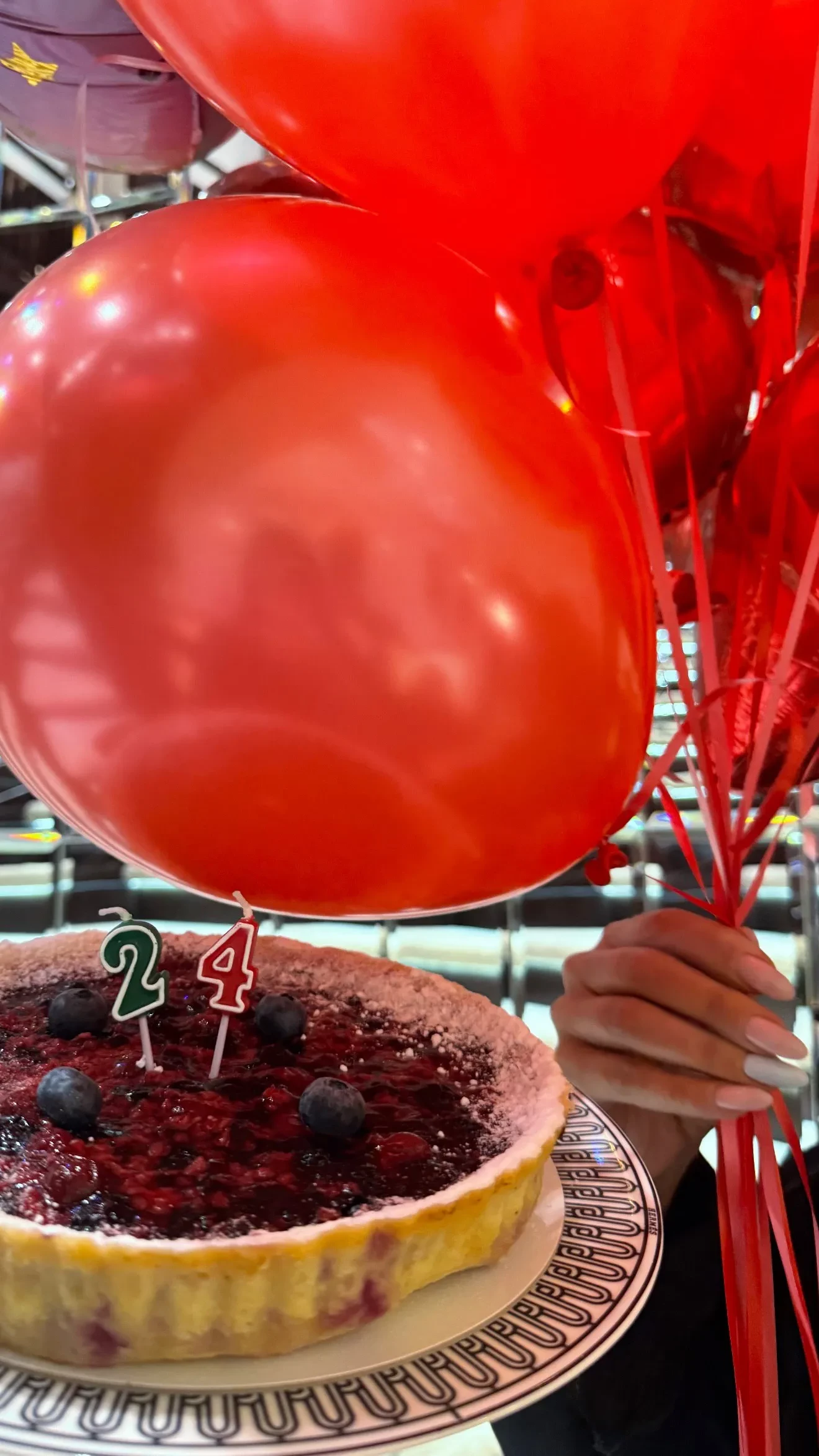 Ровно в полночь подруги Алсу и 17-летняя Микелла пришли поздравить именинницу с праздничным пирогом и свечами с цифрой "24", пирожными, бенгальскими огнями и шариками. "Традиция каждый год в 00:00. Мои любимые девочки. Спасибо, люблю", — написала певица в сторис*.