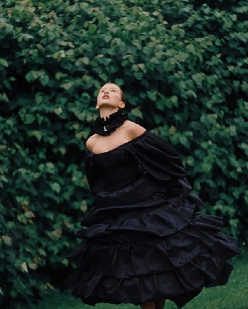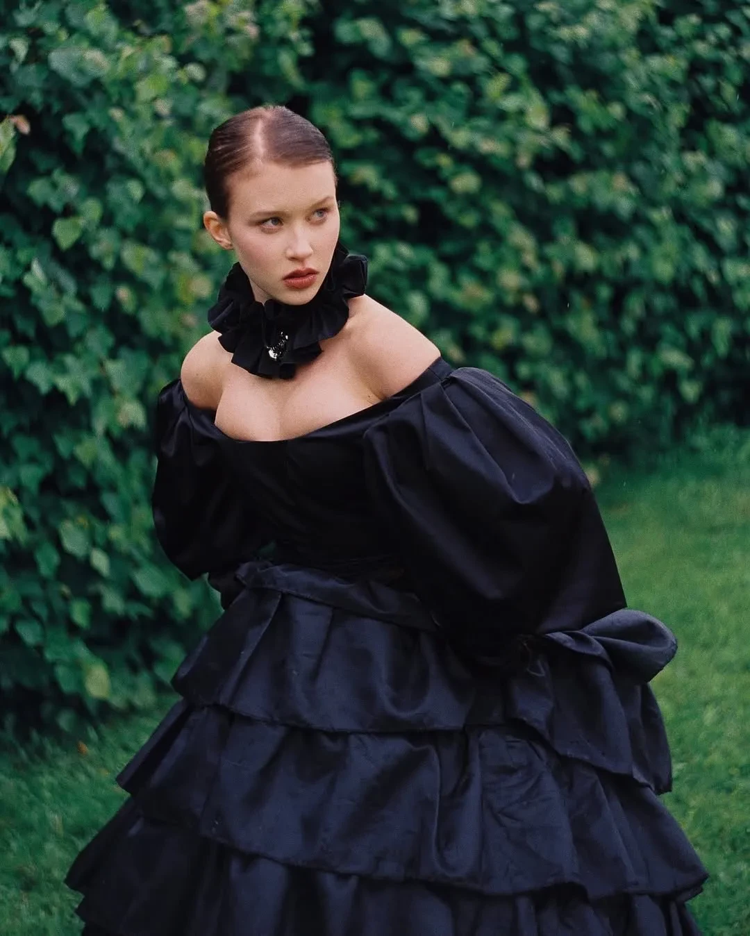 16-летняя Анна Пересильд приняла участие в новой фотосъёмке. На своей странице в инстаграме* она опубликовала снимки, на которых предстала в драматическом образе с чёрным пышным платьем с декольте и гладкой укладкой.