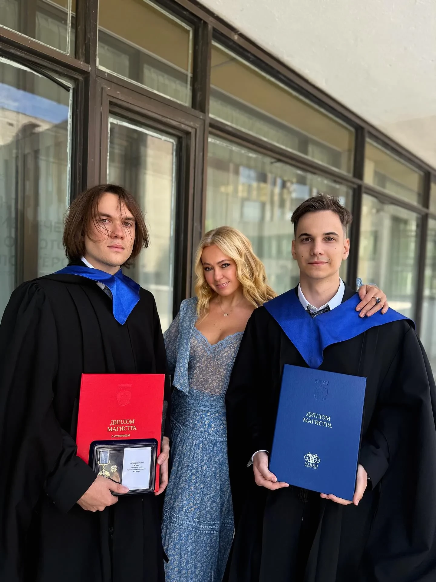 "Сегодня мои старшие дети — Андрей и Николай Батурины (те самые мои сыновья, за которых я боролась с бывшим мужем и прошла 221 суд, что является до сих пор рекордом в борьбе за детей в России) закончили магистратуру МГИМО МИД РФ. Николай получил уже второй красный диплом, он был одним из 33 магистров, которым ректор университета Анатолий Васильевич Торкунов вручал дипломы с отличием. Горжусь моими сыновьями! Воспитала вместе с моими родителями достойных людей с лучшим образованием в нашей стране! Теперь же провожаю в долгий жизненный путь со слезами на глазах!", — написала продюсер.