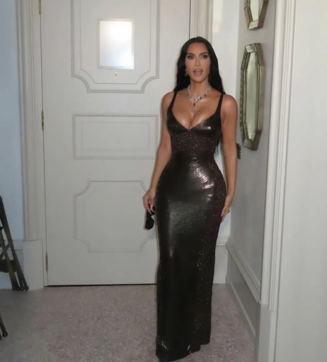 В сети обсуждают колье весом в 105 каратов, которое Ким Кардашьян надела на свадьбу Лорен Санчес и Джеффа Безоса