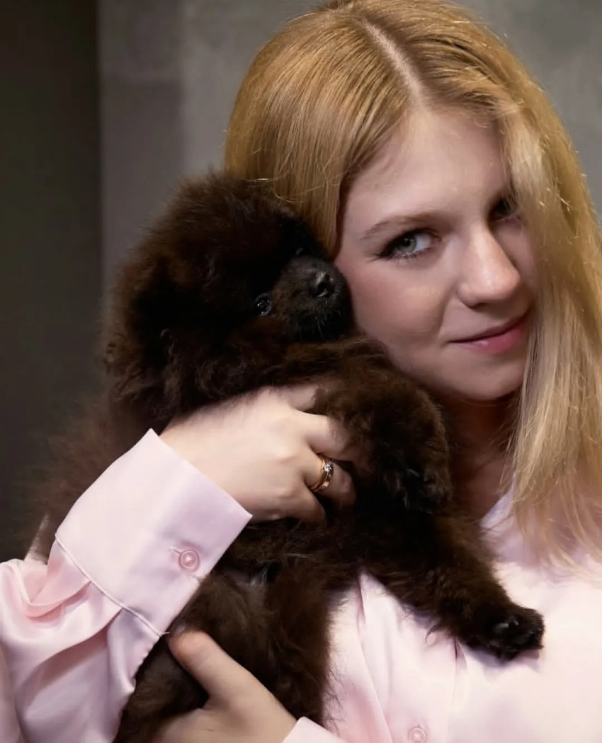 На снимках фигуристка предстала в розовых штанах и рубашке, не скрывающих округлившийся живот. И хотя съёмка проходила не на льду, на ногах спортсменки были коньки. А довершал композицию один из домашних питомцев Трусовой.