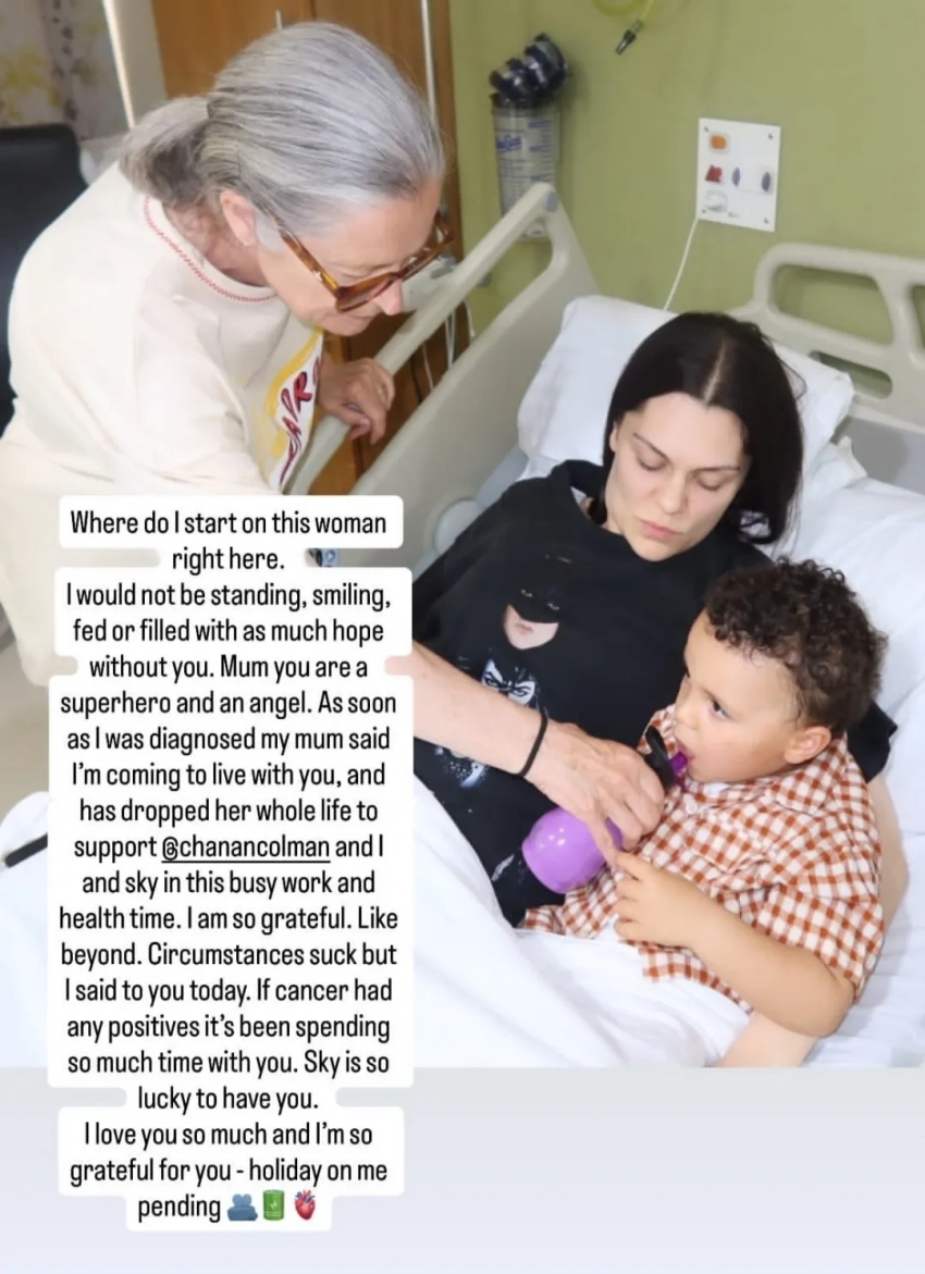 Джесси Джей с мамой и сыномЧанан КолманДжесси Джей с мамой и сыномДжесси выразила не только огорчение в связи с тем, что ей приходится переживать, но и признательность своим близким людям. Она поблагодарила своего возлюбленного Чанана Колмана за то, что он выполняет роль сиделки и свои отцовские обязанности, а также свою маму, которая переехала к дочери, чтобы помочь ей с сыном. Напомним, что Джесси родила сына Ская в 2023 году. До этого врачи диагностировали у неё бесплодие.