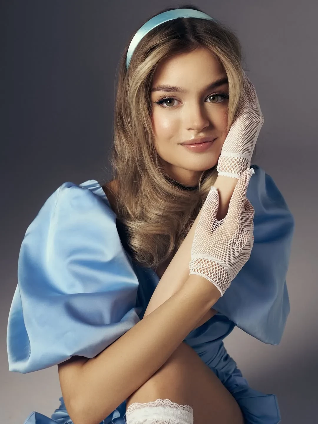 В кадре Олексюк предстала в голубом платье, балетках MiuMiu в тон и кружевных гольфах. "Сегодня примеряю образ Золушки", — подписала актриса фото и отметила в качестве локации парк развлечений Disney World, видимо, представляя себя диснеевской принцессой. В комментариях под фото подписчики шутят, что Александрина уже "нашла своего принца".