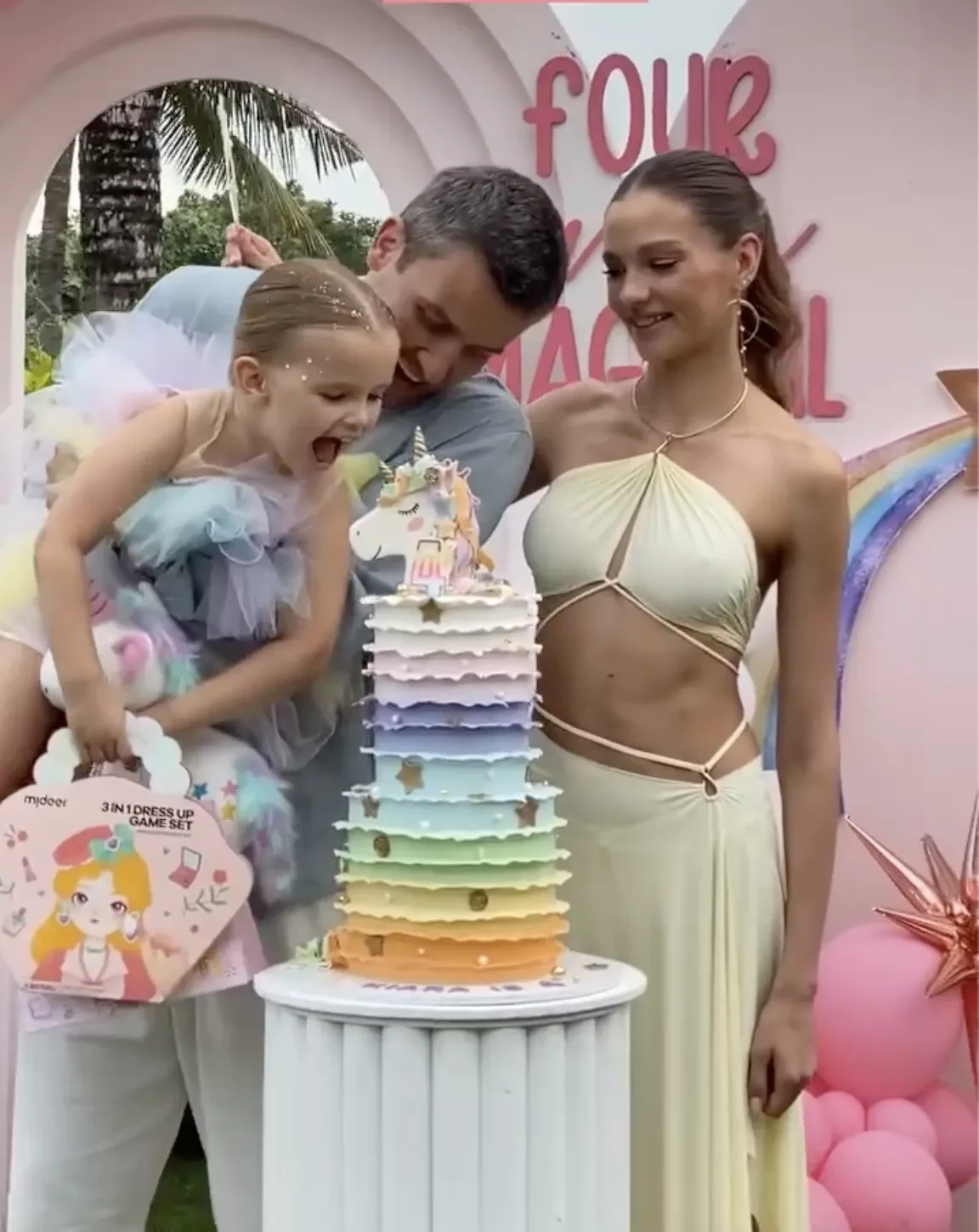 В сети появились новые фотографии с празднования дня рождения дочери Алеси Кафельниковой Киары, которой на днях исполнилось четыре года. 26-летняя Кафельникова поделилась снимками с детской вечеринки, показав не только фото с дочерью, но и с мужем, 39-летним бизнесменом Георгием Петришиным, который нечастый гость в соцсетях модели.