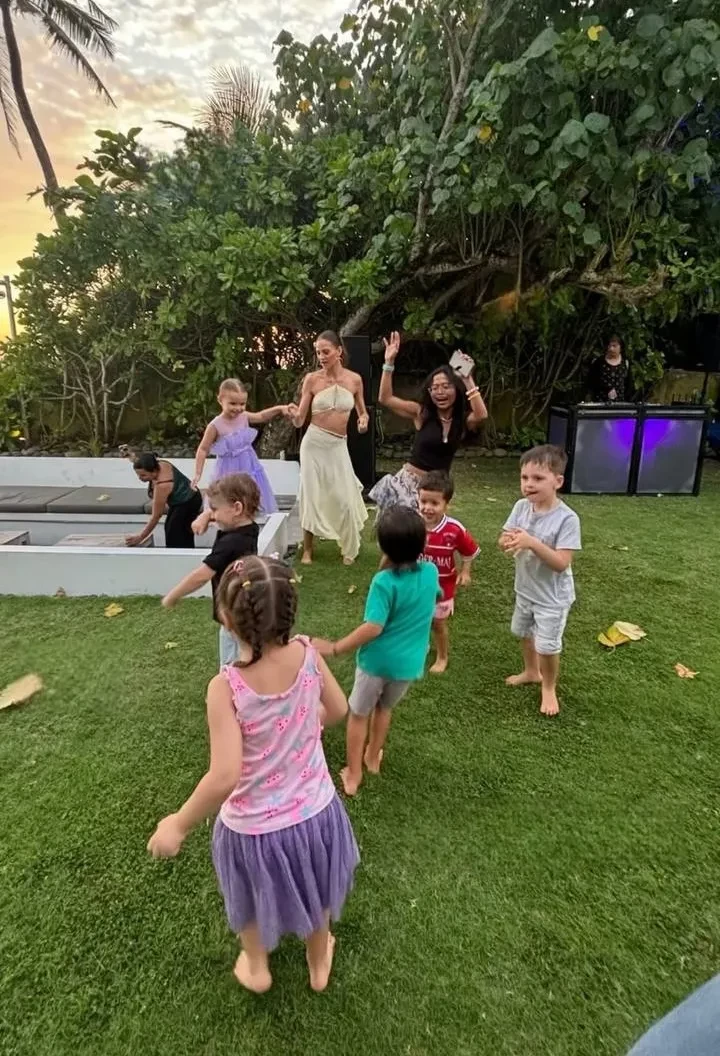 Алеся Кафельникова и Георгий Петришин с дочерьюДень рождения Киары прошёл на берегу океана, предположительно на Бали, где Кафельникова часто живёт с семьёй. Территорию у бассейна украсили надувной замок и воздушные шары. Детей и взрослых развлекали аниматоры-русалки, угощали разноцветным тортом, а вечером был фейерверк на пляже.