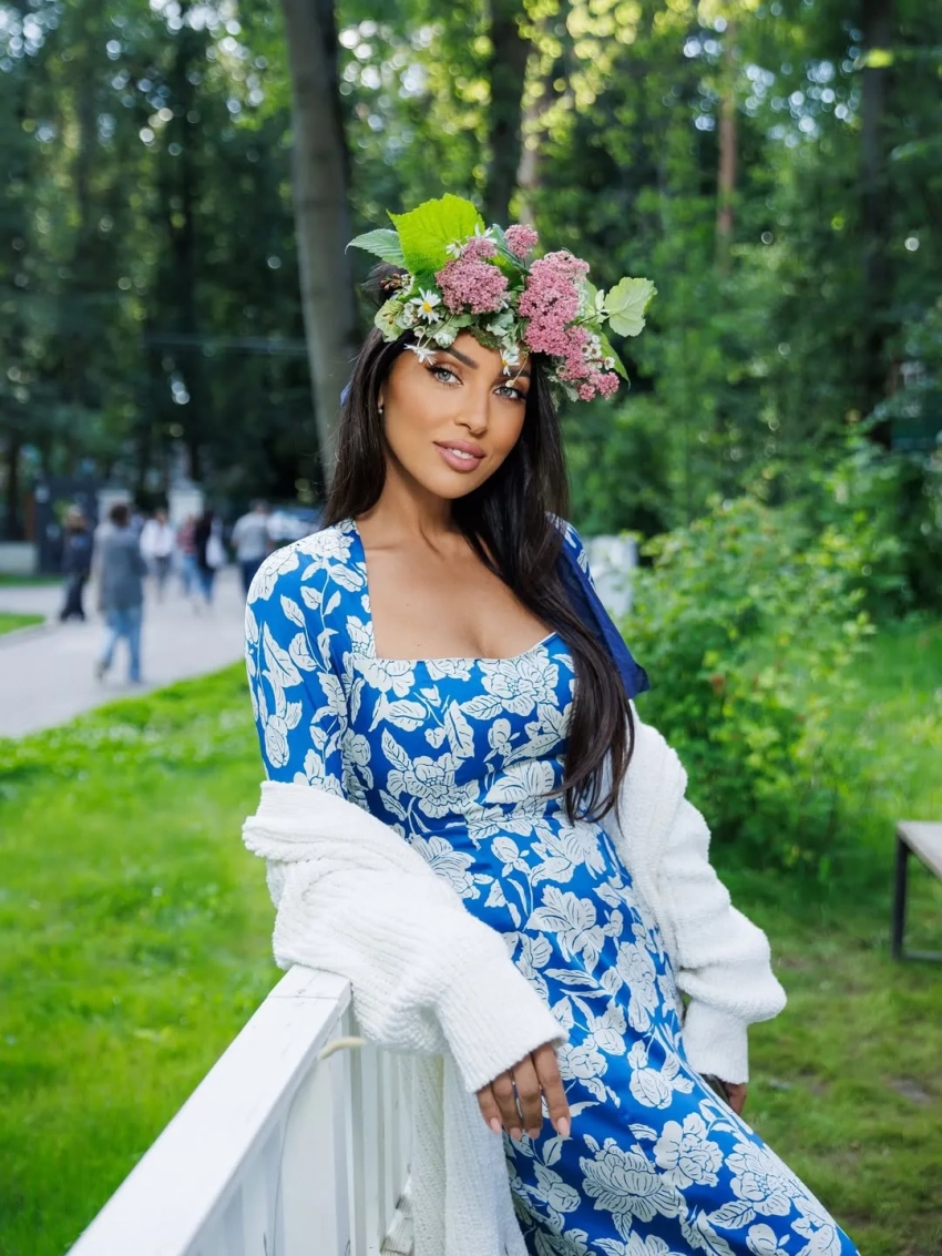 Алсу пришла на праздник в платье в бело-синих оттенках с разрезом и белом кардигане. Гости развлекались в лучших традициях загородных посиделок: пили чай из самовара и плели венки из полевых цветов. "Это был прекрасный день! Спасибо дорогая Аида за эту сказку и море впечатлений!", — написала певица в соцсетях.
