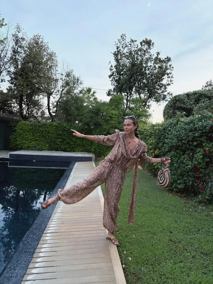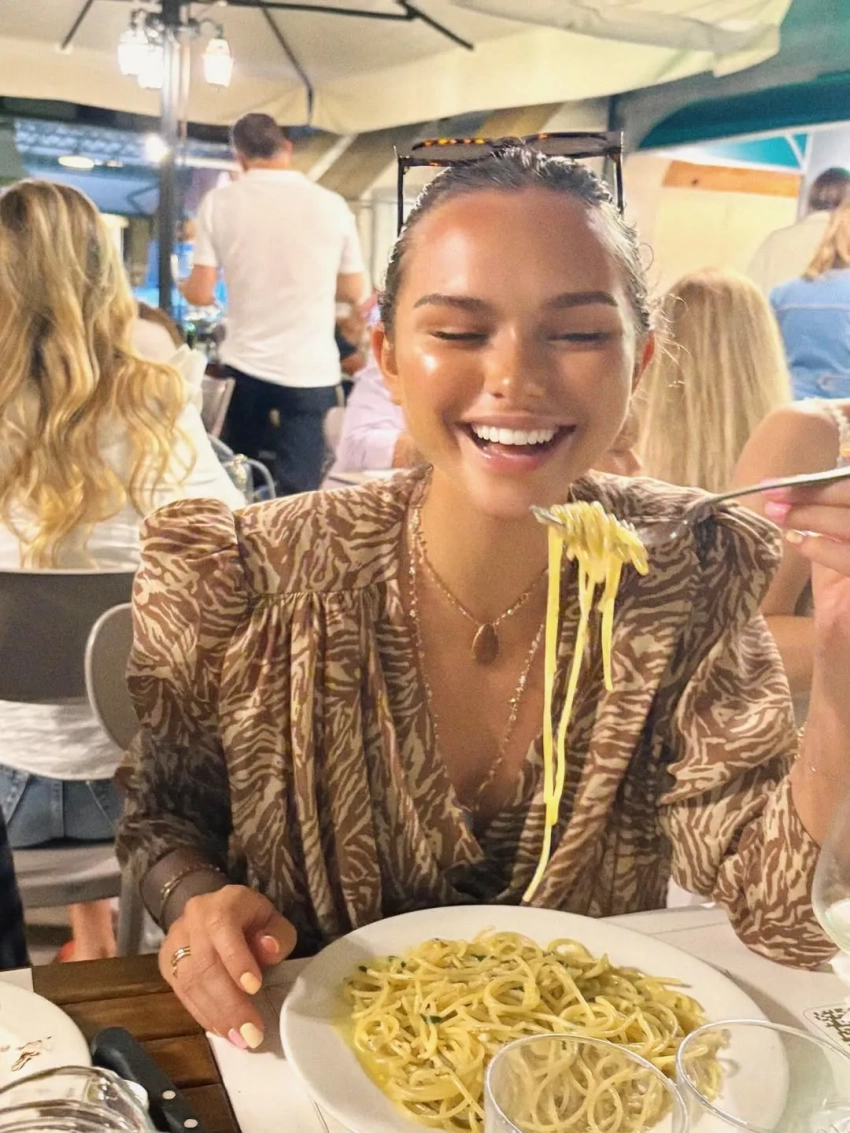 На отдыхе инфлюенсер и основательница бренда одежды Dress by Stesha выгуливает модные образы, катается на велосипеде по итальянскому курорту в платьях и на каблуках, ест пасту в компании родителей и семилетнего брата Марка, делает покупки в бутике Prada и просто наслаждается отпуском.