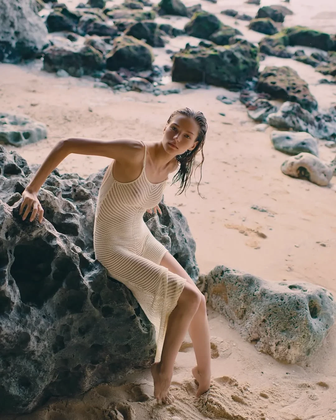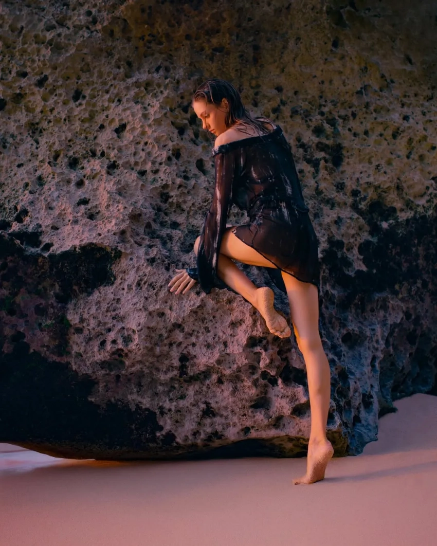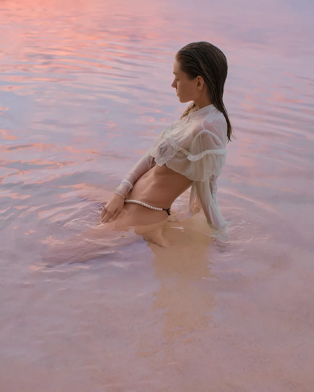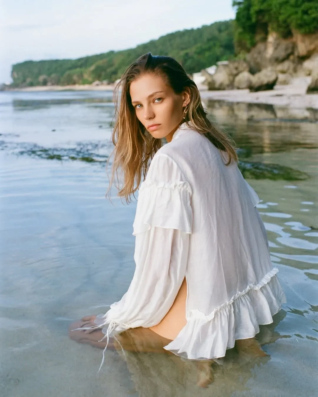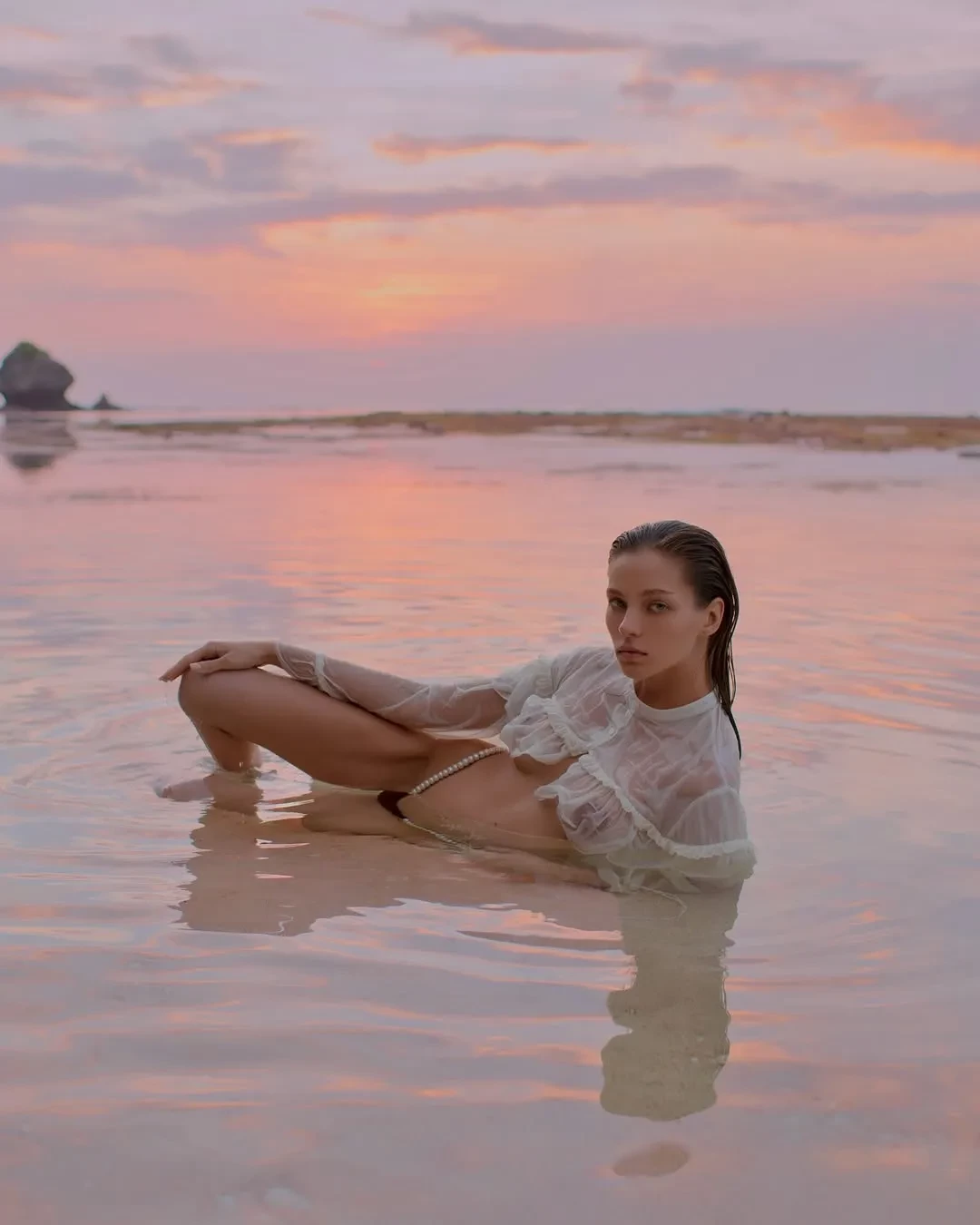 26-летняя Алеся Кафельникова, которая недавно вместе с мужем отпраздновала четвёртый день рождения дочери Киары, снялась в новой фотосессии на острове Бали. На снимках модель позирует на пляже в прозрачной блузке и плавках с жемчугом, а также в платье кроше и рубашке.