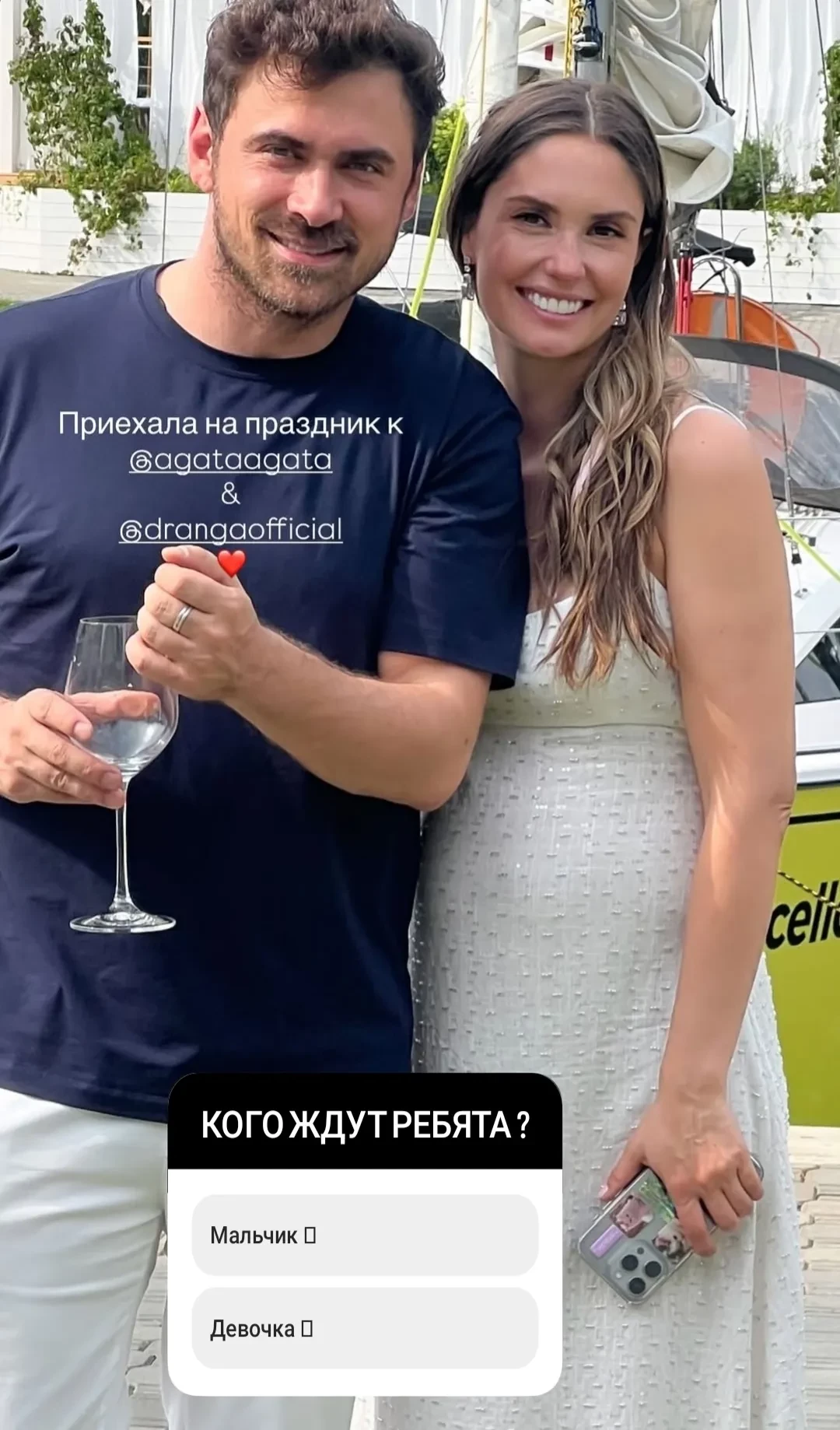 В своих соцсетях Агата опубликовала фотографии и видео с праздника, на который пригласила Наталью Земцову, Анну Банщикову, Елену Дудину и других звёздных друзей. Перед тем, как раскрыть приглашённым главную интригу вечера, она предложила гостям отдать свой голос за мальчика или девочку. Сама Муцениеце проголосовала за девочку. Именно её, скорее всего, звезда и ждёт, судя по попавшим на видео деталям (розовая сахарная вата, розовый букет цветов в руках у Петра Дранги). Однако официального объявления Муцениеце ещё не делала.