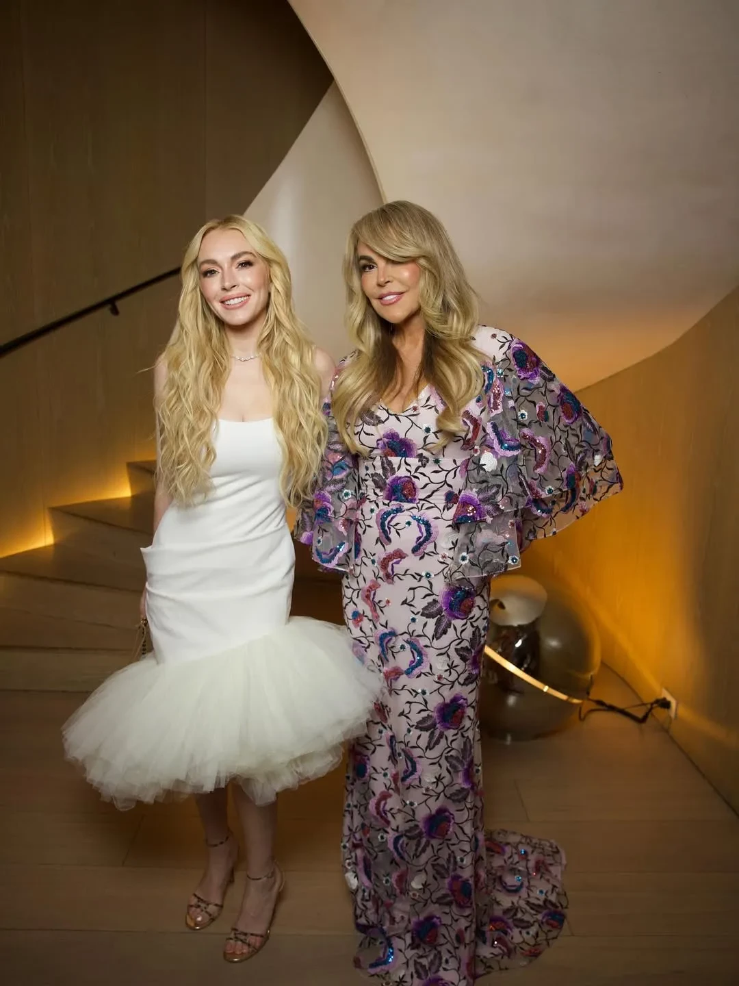 Звезда надела на премьеру белое платье Jacquemus с асимметричной юбкой и золотые босоножки на каблуках. На дорожку также вышли коллеги Линдси по фильму — Джейми Ли Кёртис и Чад Майкл Мюррей.