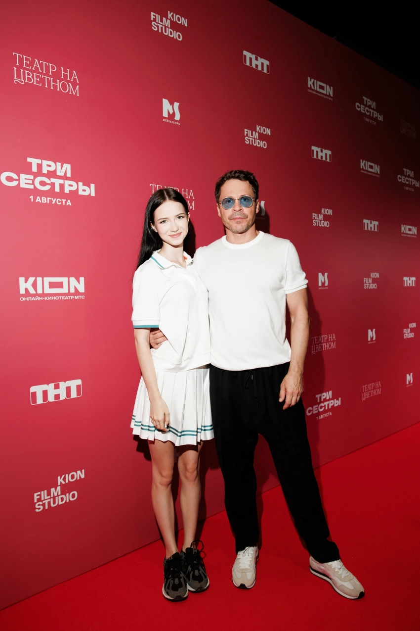 Главные новости » Шоу-Бизнес » Павел Деревянко с дочерью, Виктория Дайнеко с мужем, Саша Савельева, Аврора Киба, Прохор Шаляпин и дочь Тимати на премьере сериала "Три сестры"