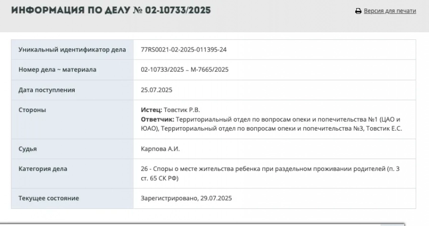 История о драме в семье Дибровых обрастает подробностями: стало известно, что "любовник" Полины Дибровой, к которому она якобы ушла от мужа, не только разводится со своей женой, но и намерен отсудить у неё всех шестерых детей. Иск об определении места жительства детей был подан в суд Москвы 25 июля — его можно найти на официальном портале Судов общей юрисдикции города Москвы.