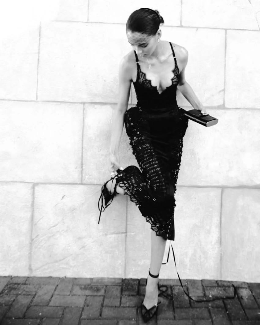 26-летняя Алеся Кафельникова начала сотрудничать со стилистом Витой Клатц. В своих соцсетях она опубликовала фото первого образа, созданного в коллаборации с ней.