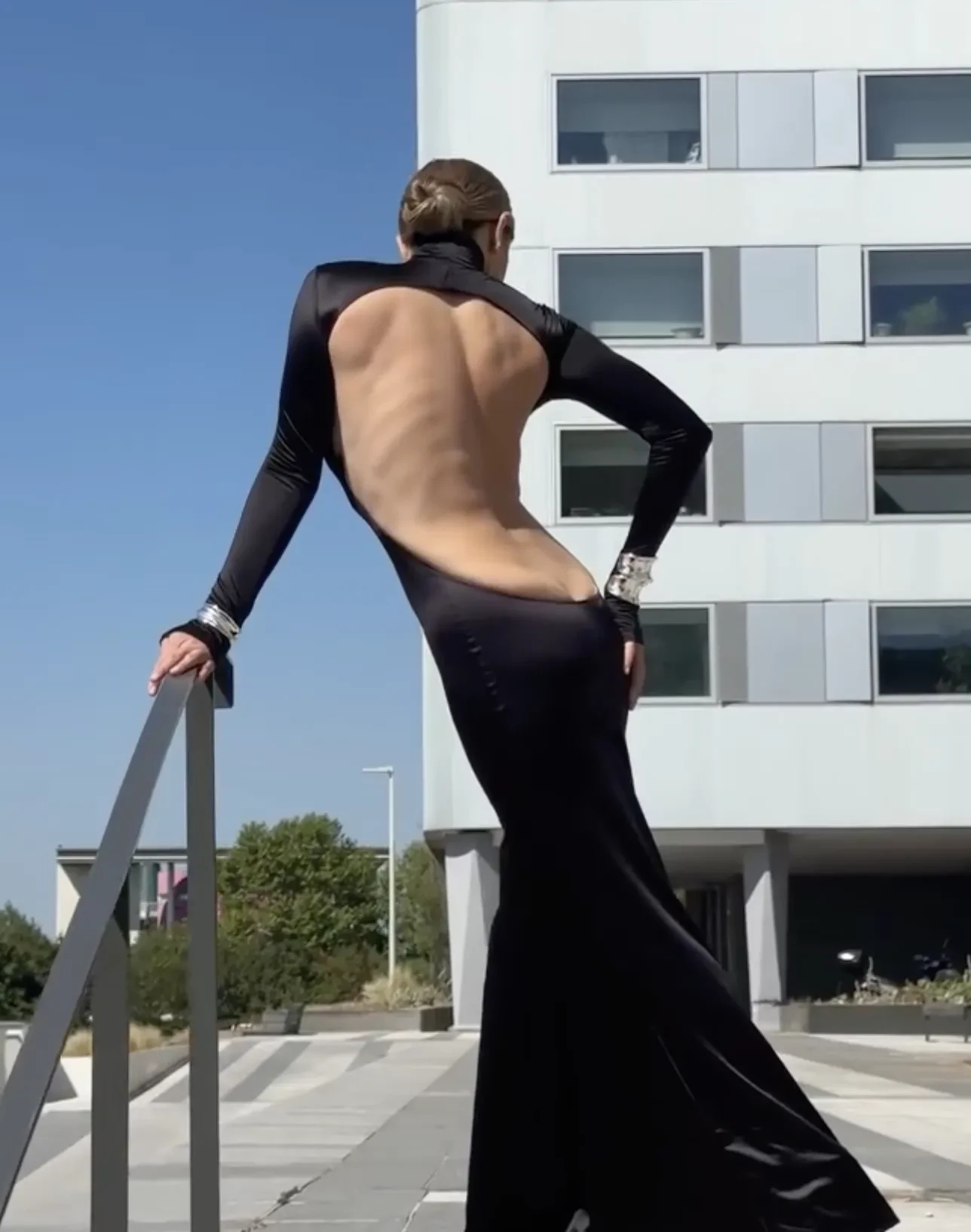 Вера БрежневаВера БрежневаВера БрежневаВера БрежневаВера БрежневаВера БрежневаВера БрежневаВера БрежневаВера БрежневаВера БрежневаВера БрежневаВера БрежневаВпервые платье с "задним декольте" публика увидела на героине Мирей Дарк в фильме "Высокий блондин в чёрном ботинке", вышедшем в 1972 году, хотя двумя годами ранее Ив Сен-Лоран создал идентичное платье, глубокий вырез на спине которого прикрывало только чёрное кружево. С тех пор многие дизайнеры повторяли модный приём с частичным оголением ягодиц.