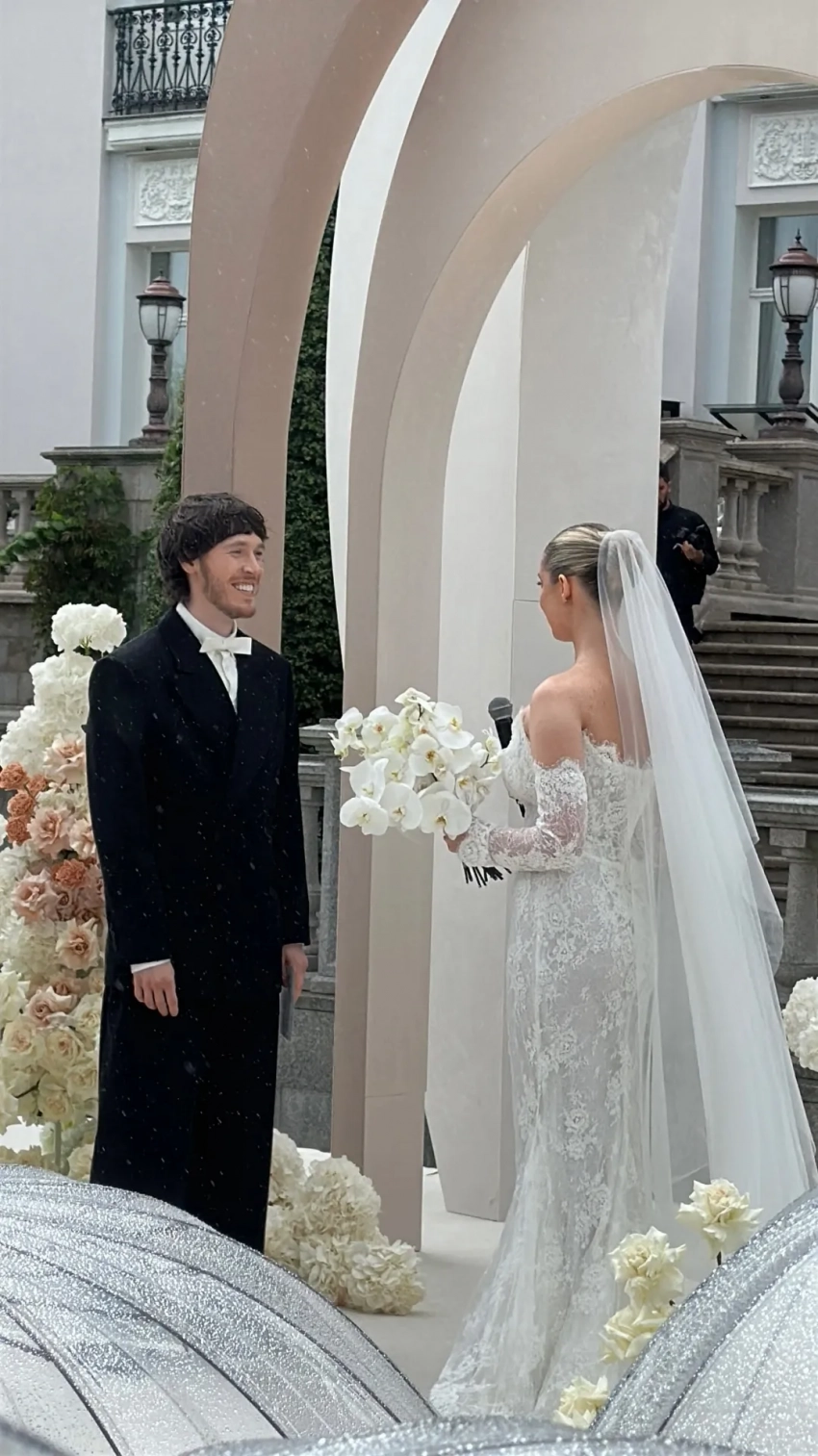 Церемония прошла в одной из самых модных локаций года — подмосковной усадьбе Villa Michetti (ранее там сыграли свадьбы блогеры Адель Вейгель и Михаил Литвин, а также Ксения Бородина и Николай Сердюков). Невеста предстала в кружевном платье в пол и фате, а жених выбрал классический чёрный смокинг с бабочкой.