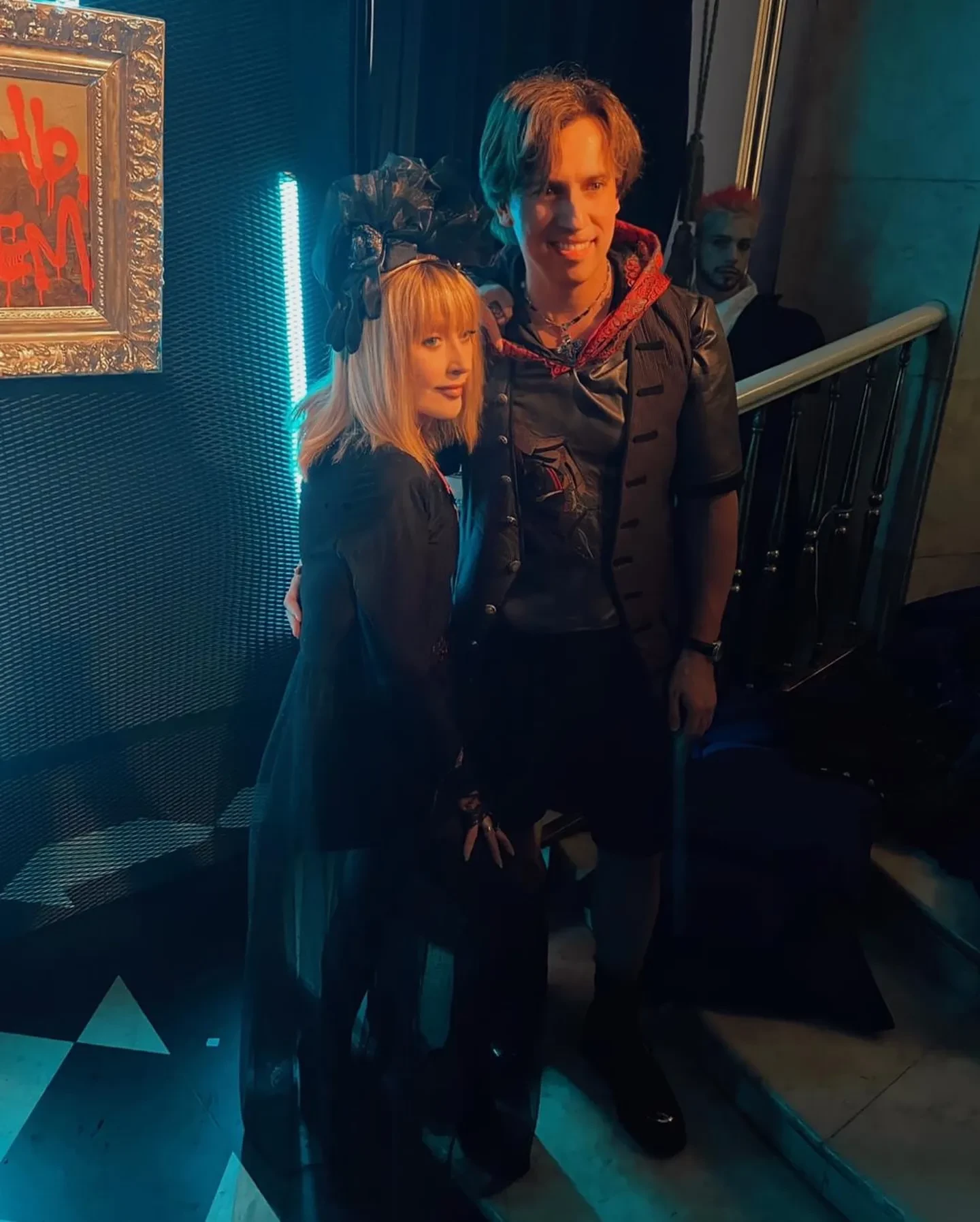 На снимках Галкин* запечатлён в нескольких образах: в меховой шапке, в средневековой одежде, а также в костюме капитана Джека Воробья. Он также добавил фото со своей женой Аллой Пугачёвой в готическом образе и её отдельный снимок в чёрном кожаном платье.