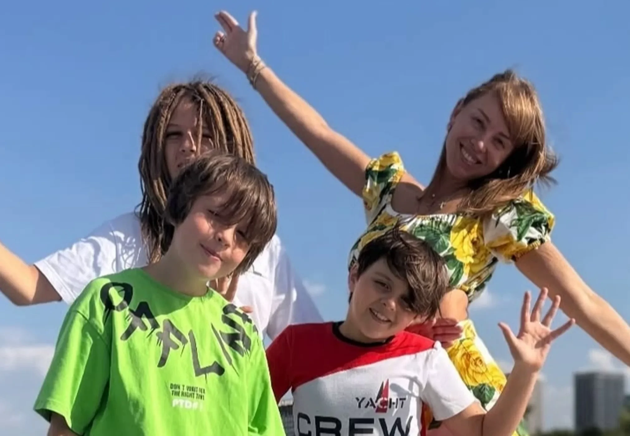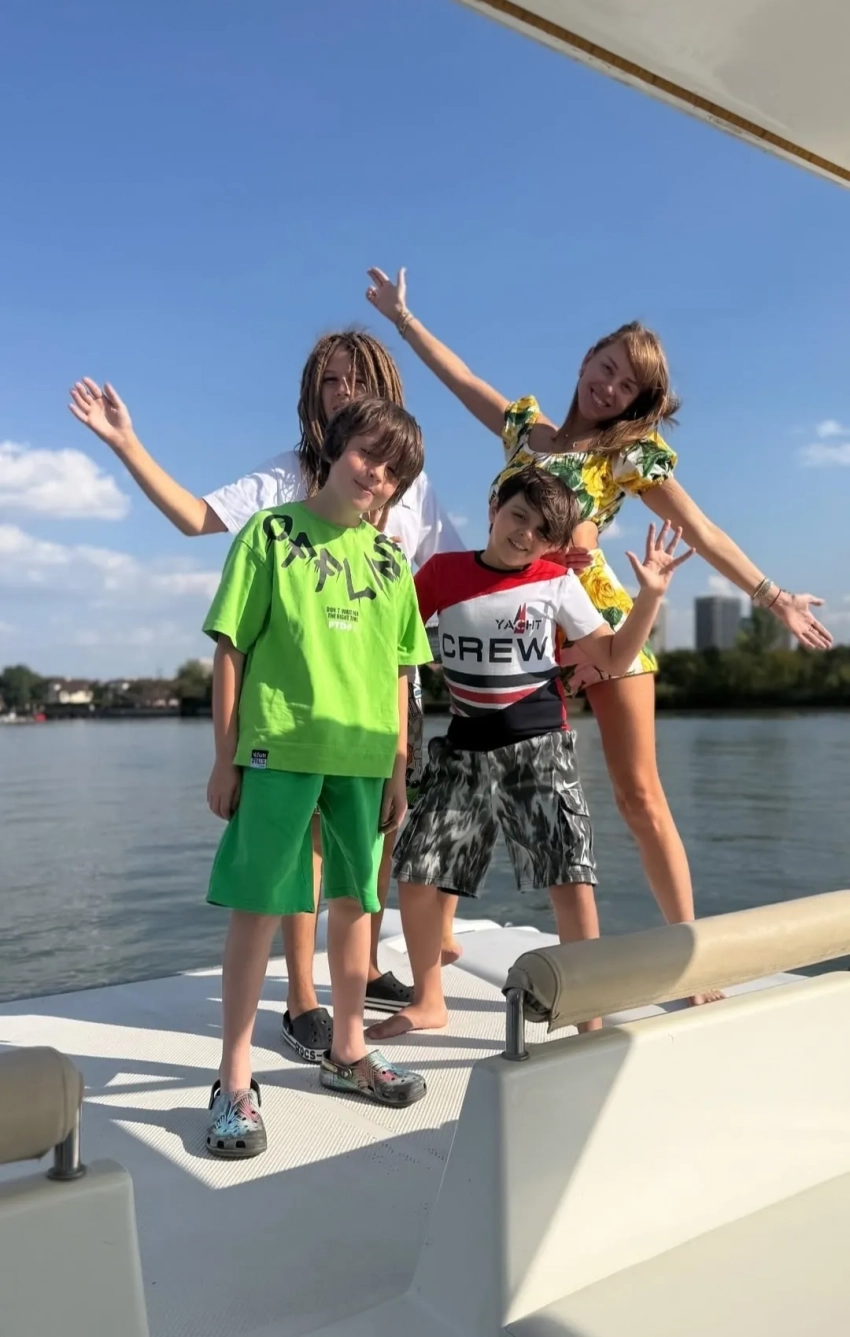 Около недели назад Полина отправила троих сыновей — Александра, Фёдора и Илью — погостить к родственникам, а теперь и сама приехала на родину. В своих соцсетях Диброва опубликовала видео, снятое на яхте, в котором попросила детей передать привет отцу.