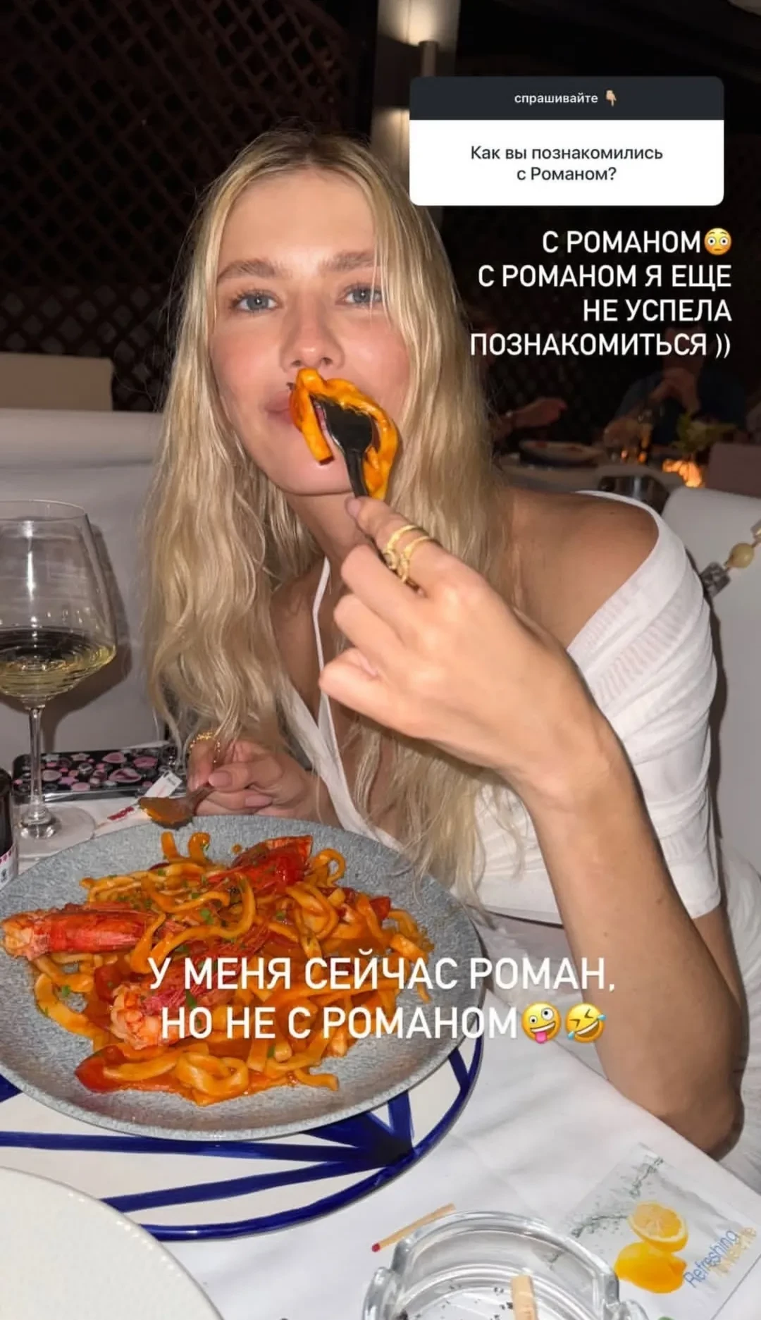 Дети Елены ПерминовойВ августе Перминова отдыхала на Капри и Ибице вместе со своим новым бойфрендом Тарасом Романовым. Из-за его фамилии многие фолловеры модели думают, что её возлюбленного зовут Роман. Так, одна подписчица Елены спросила: “Как вы познакомились с Романом?”, на что Перминова шутливо ответила: “С Романом я ещё не успела познакомиться. У меня сейчас Роман, но не с Романом”.