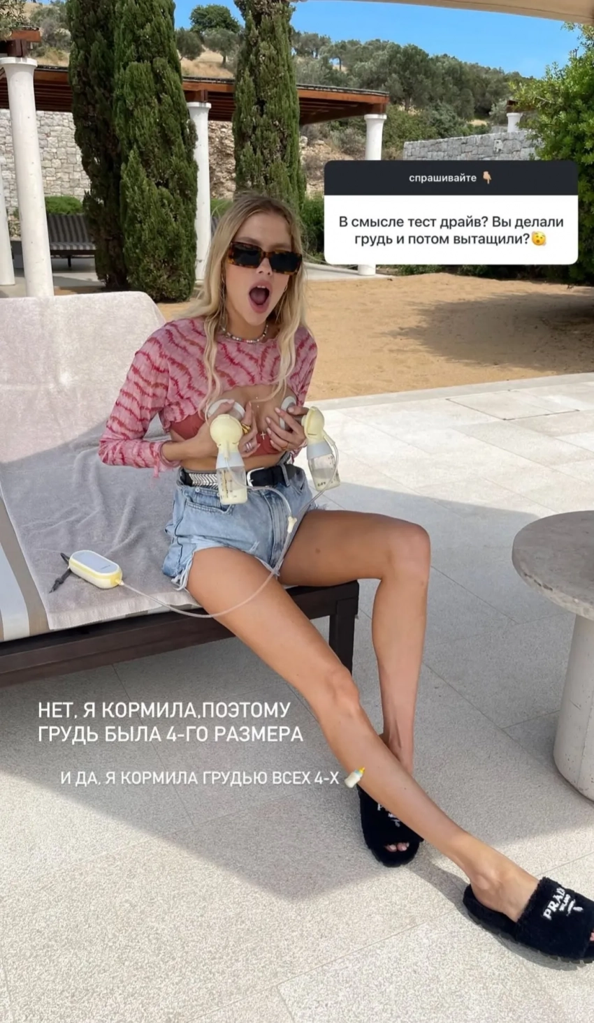 Елена Перминова“Я кормила, поэтому грудь была четвёртого размера. И да, я кормила грудью всех четверых”, — написала модель. Кроме того, она заявила, что может родить и пятого ребёнка: "Уже даже скучаю, когда все были такими озорными детками".