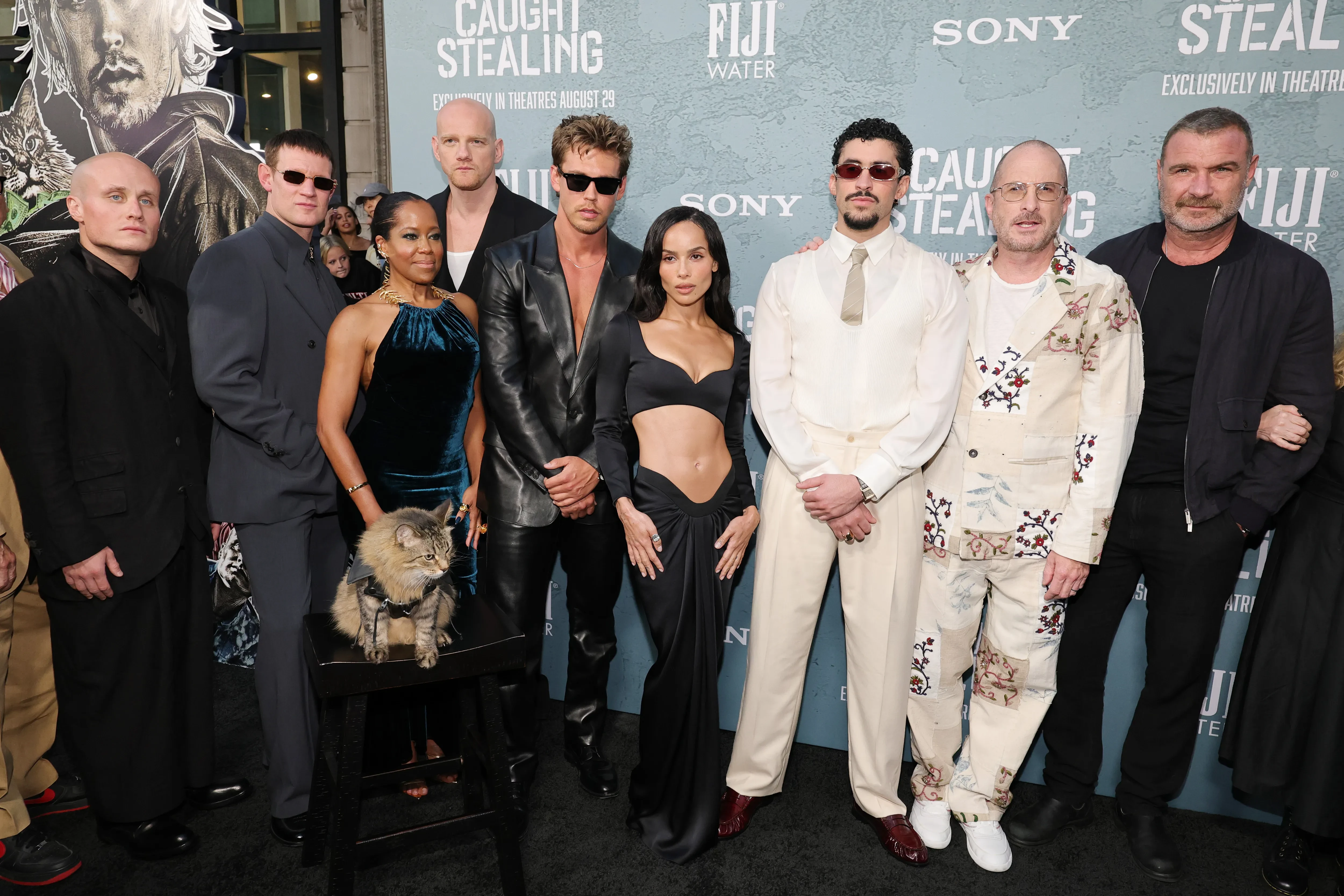 В Нью-Йорке состоялась премьера криминальной комедии Даррена Аронофски "Пойман с поличным". На красную дорожку показа вышли исполнители ролей — Зои Кравиц и Остин Батлер, которых сейчас подозревают в романе, а также россияне Юрий Колокольников и Никита Кукушкин*, бывший бойфренд Кендалл Дженнер Bad Bunny и Мэтт Смит.
