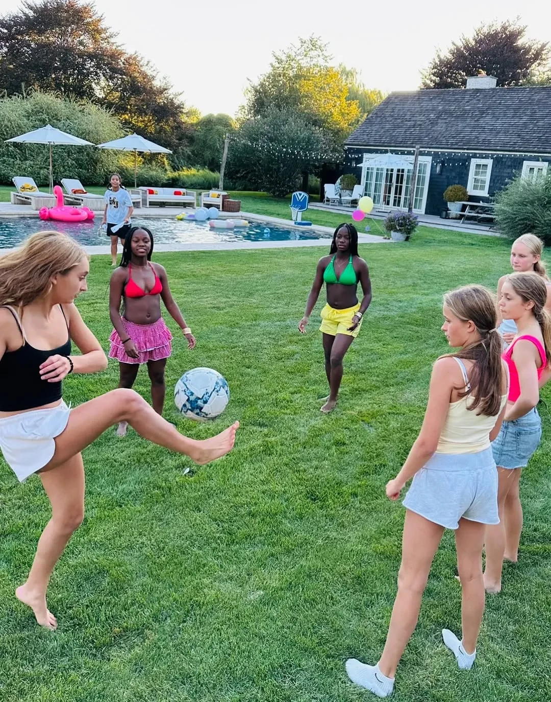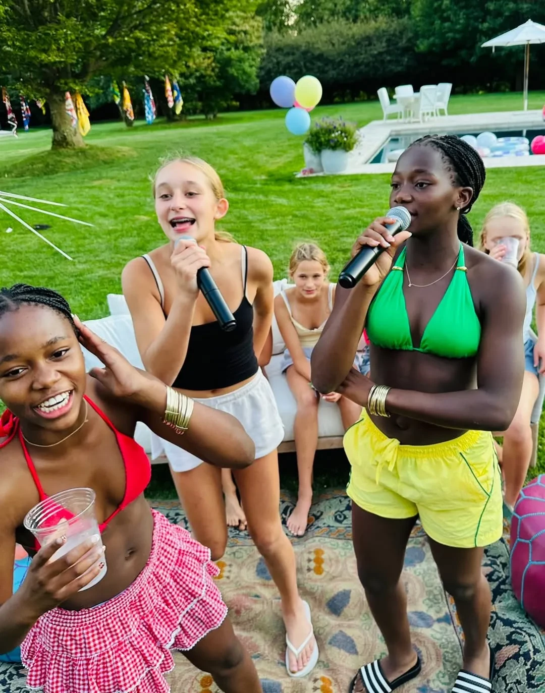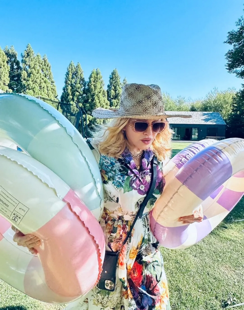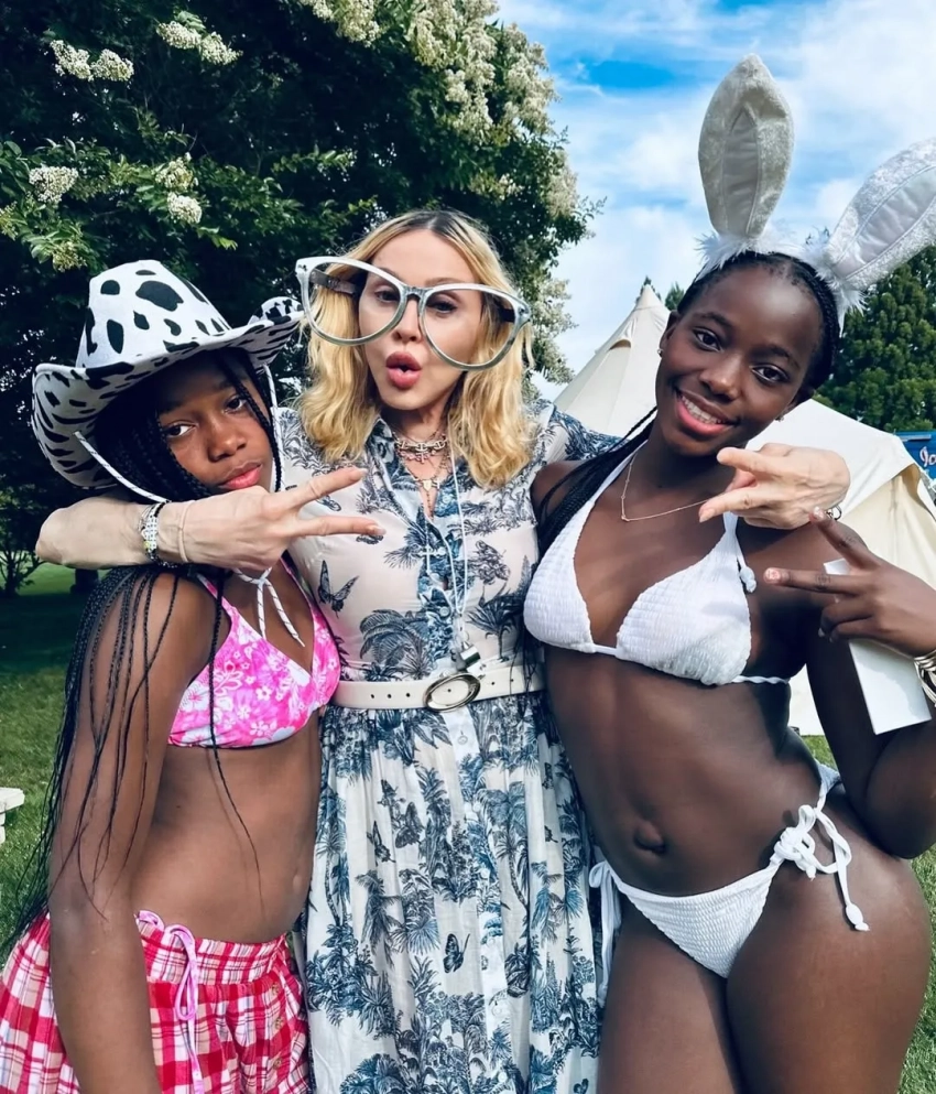 Вечеринка у бассейна и лабубу: Мадонна отметила 13-летие дочерей-близнецов с молодым бойфрендом и детьми