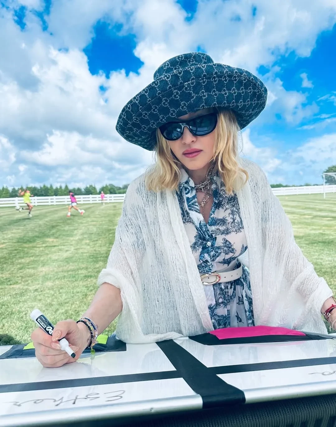 Праздничный торт Мадонны"Лабубу повсюду! С днём рождения, Стелла и Эстер! Королевы девы! Ничто не могло подготовить меня к вашим характерам, вашей энергии и вашим очень сильным убеждениям", — написала поп-звезда в соцсетях. Праздник действительно получился очень активным: дети и гости весь день играли в футбол, прыгали на батуте, катались на водных горках и пели в караоке.