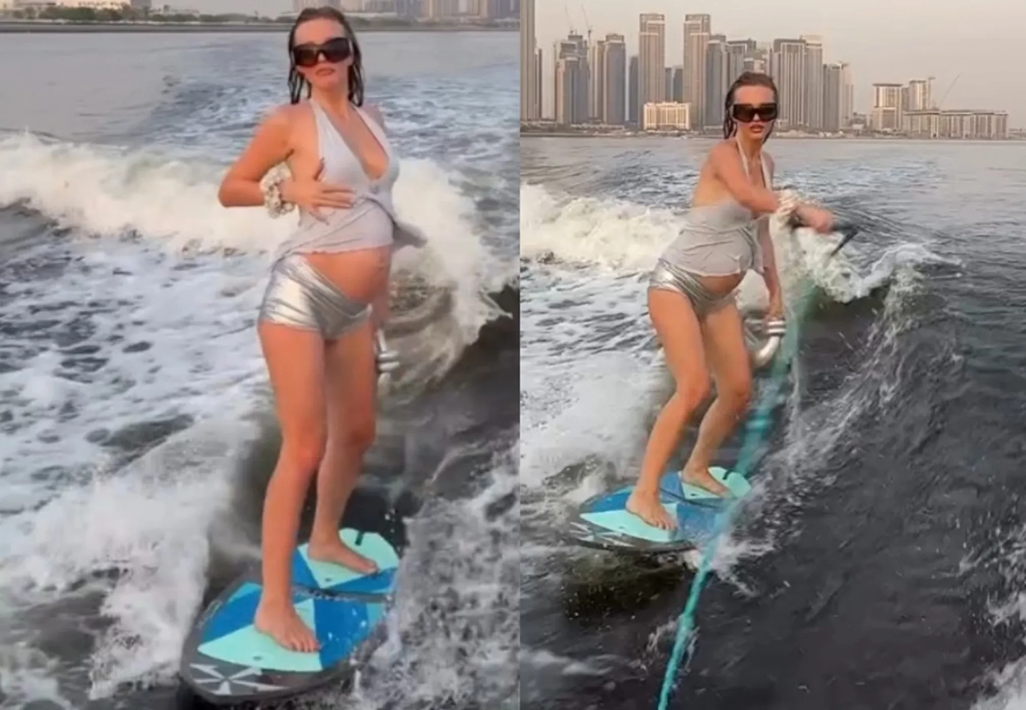 Беременная жена скандального блогера-миллионника Сергея Косенко, который бросил сына-младенца в сугроб, записала видео, как катается на вейкборде. В комментариях пользователи возмутились её поступком.