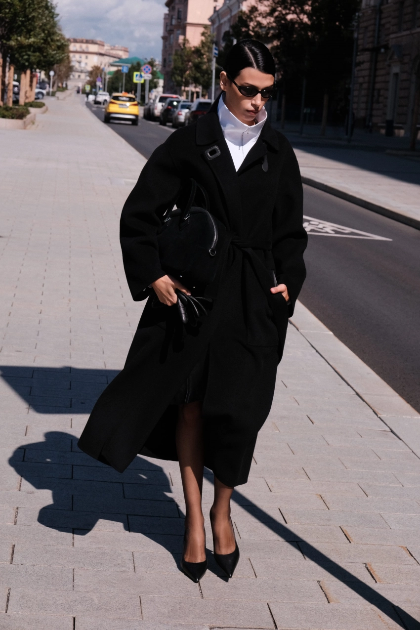 Съёмка с 25-летней Эрикой Кикнадзе стала оммажем на сцены из фильма "Дьявол носит Prada", где героиня Энн Хэтэуэй каждый день спешит в офис издательского дома в осенних образах, отметили в компании.