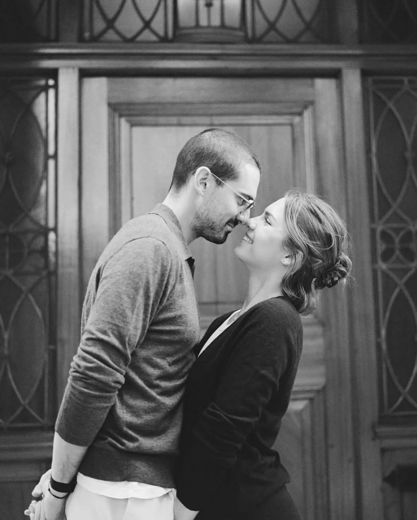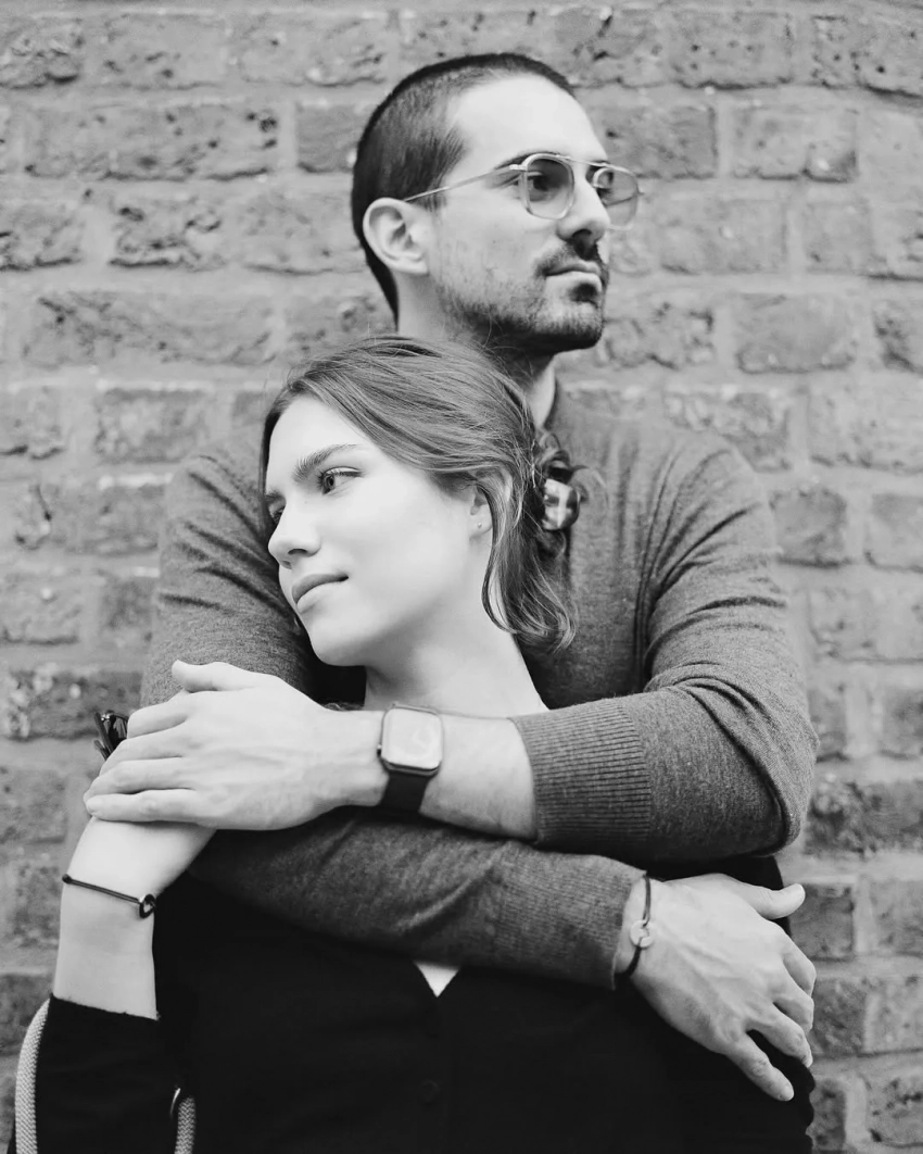 Автором снимков выступила фотограф из Москвы Мария Федина. На них Юмашева и Березовский позируют на фоне городских пейзажей вдвоем и со своим питомцем — собакой породы сибирская хаски.